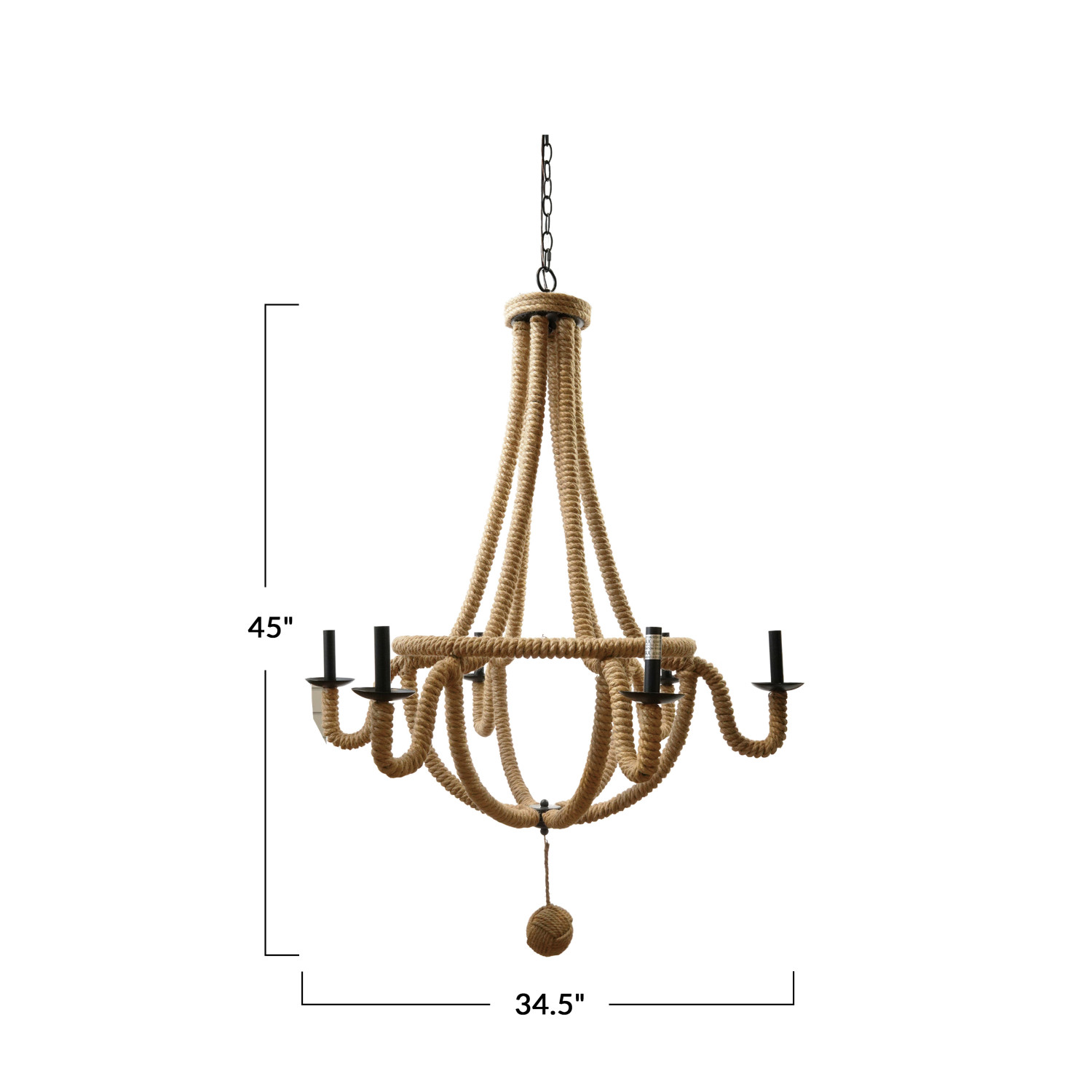 Catalog Name: 34-1/2" Round x 45"H Jute Wrapped Metal Chandelier w/ 6 Lights, 5' Chain & 5' Cord, Natural & Black, Truck Ship (Hardwire Only)