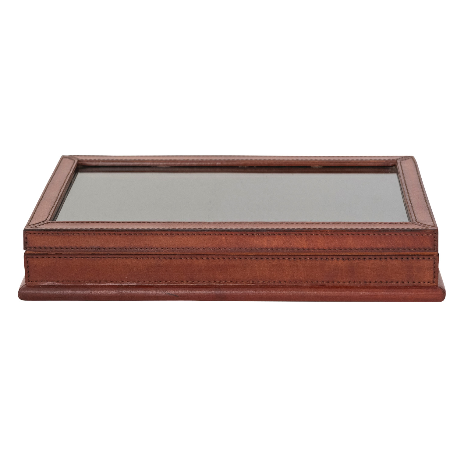 Catalog Name: 14-1/2"L x 9-1/4"W x 2-3/4"H Handmade Leather & MDF Box w/ Glass Lid & Magnetic Closure, Brown
