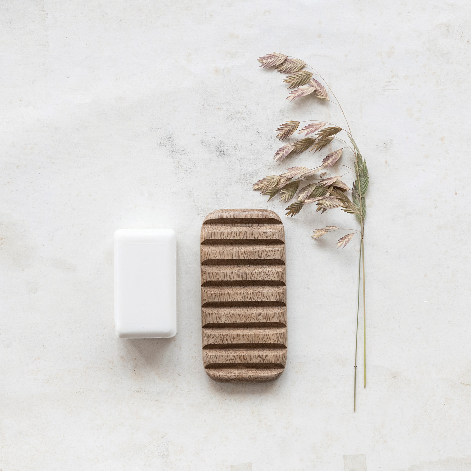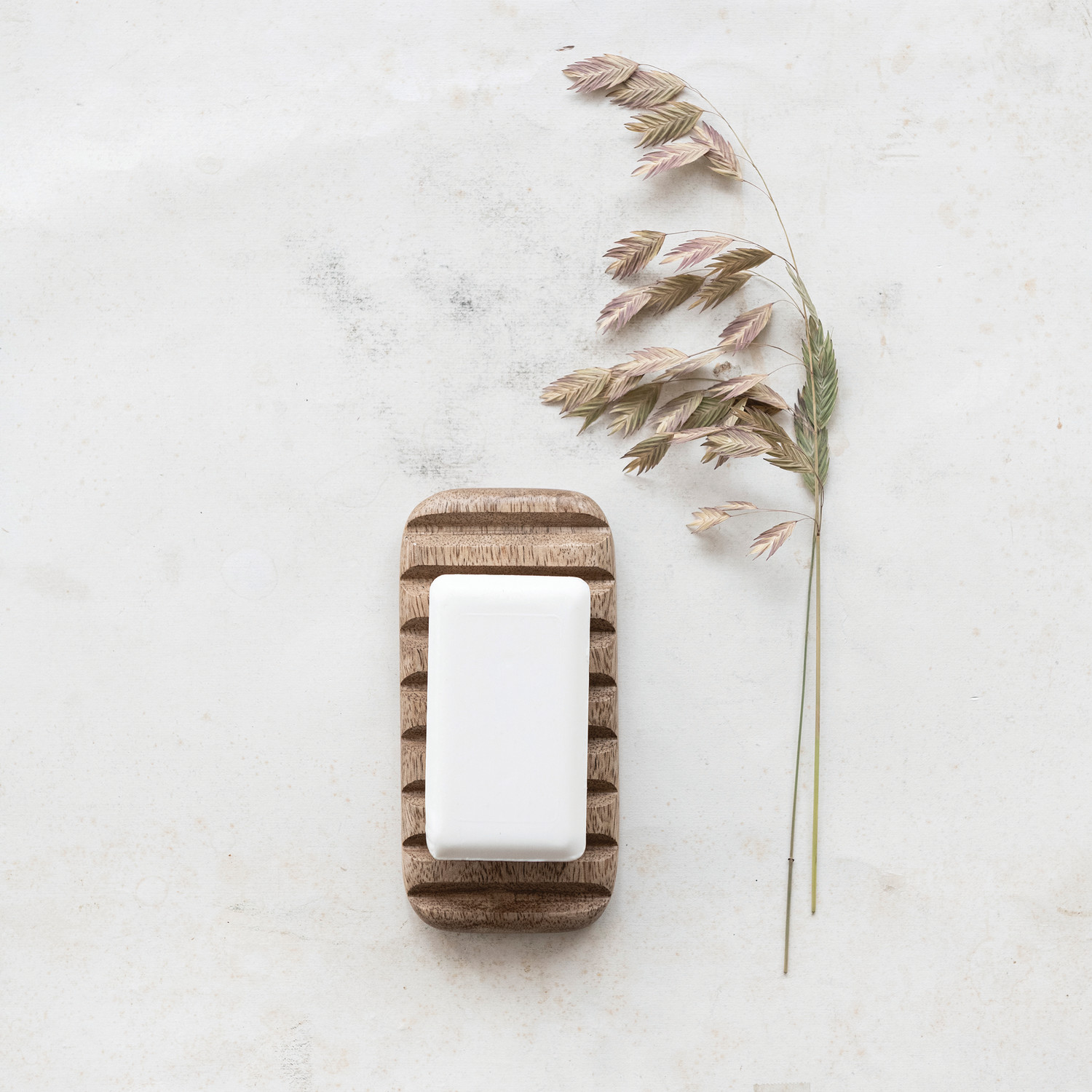 Catalog Name: 6"L x 3"W Carved Mango Wood Soap Dish, Natural