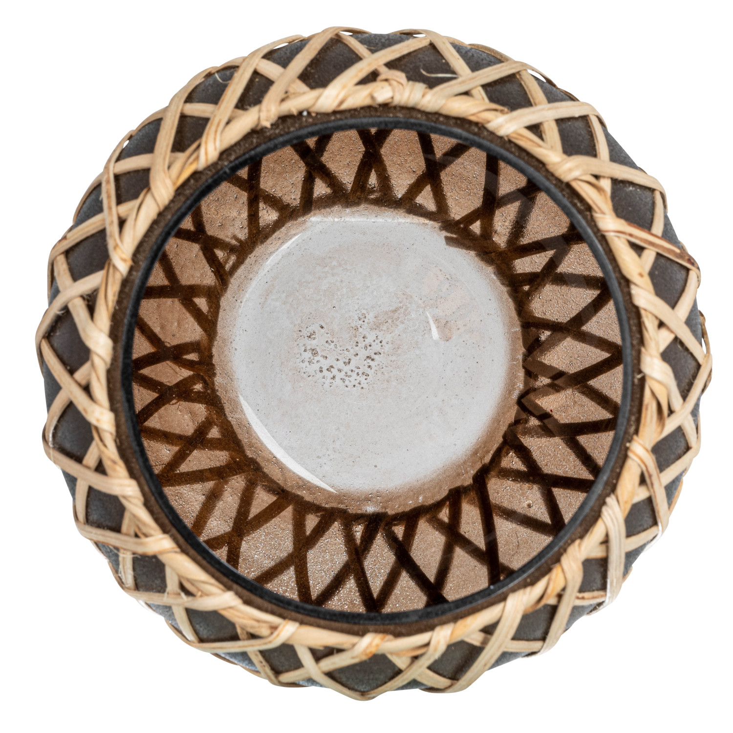 Catalog Name: 5-1/4" Round x 5"H Woven Rattan & Glass Votive Holder, Brown & Natural