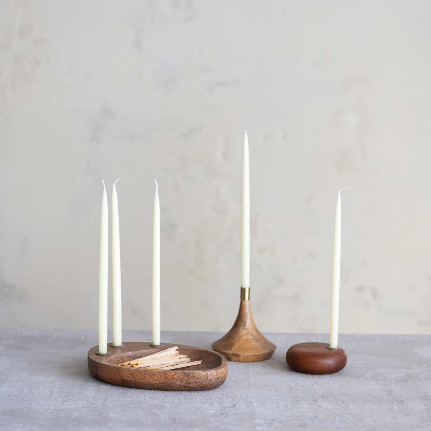 Mango Wood & Metal Taper Holder with Tray (Holds (3) 1/2" Tapers)