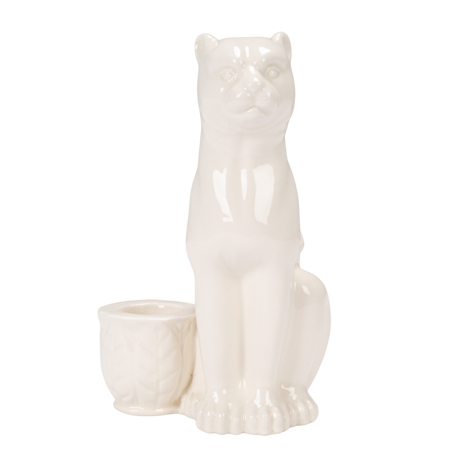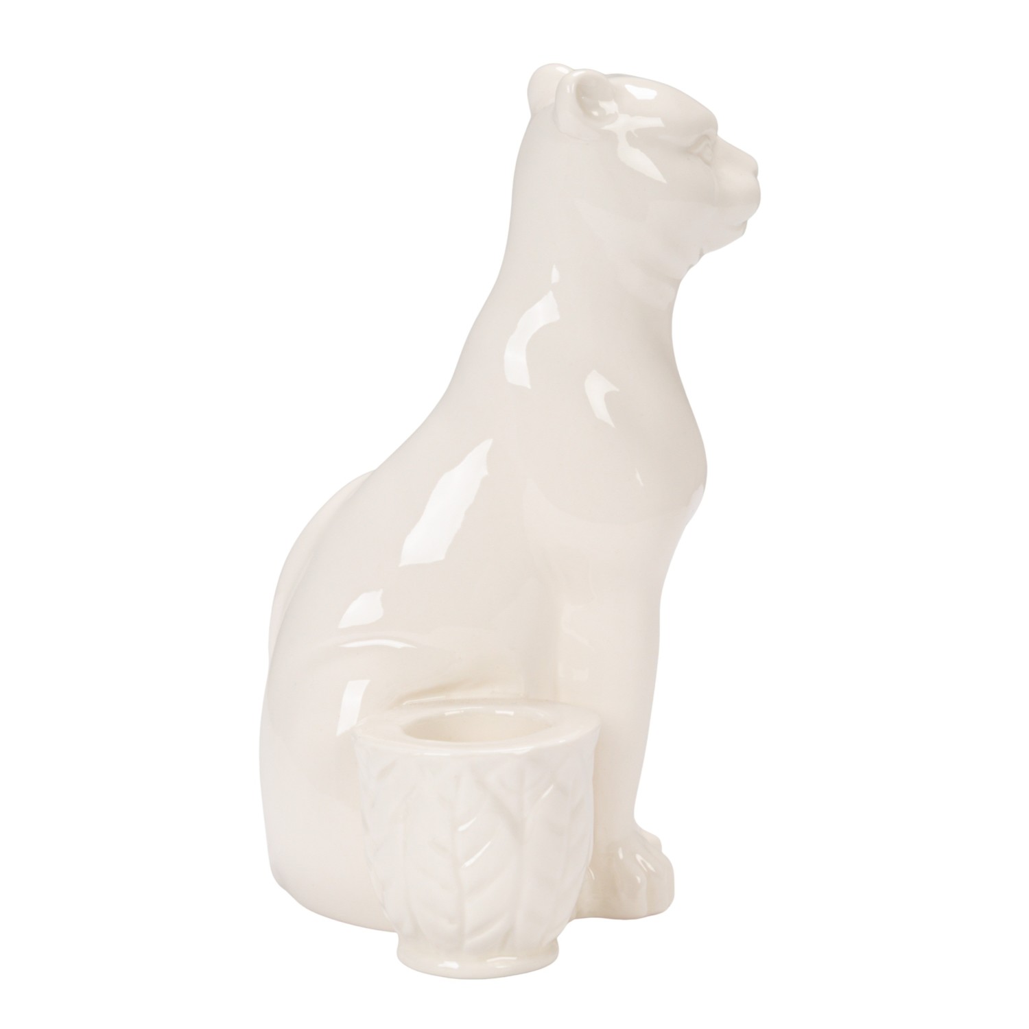 Stoneware Taper Holder with Leopard, White