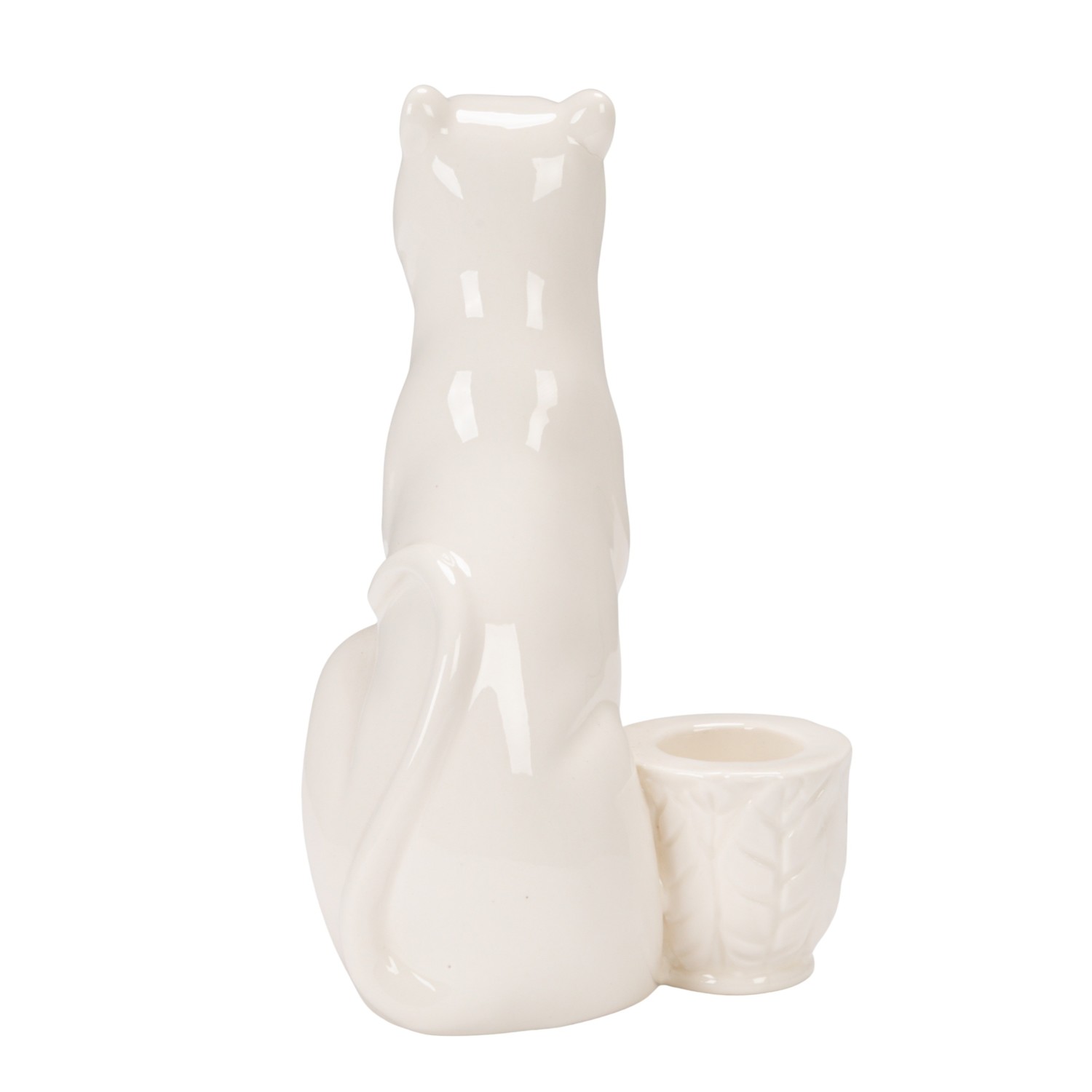 Catalog Name: 3-1/2"L x 3-1/4"W x 5-3/4"H Stoneware Taper Holder w/ Leopard, White