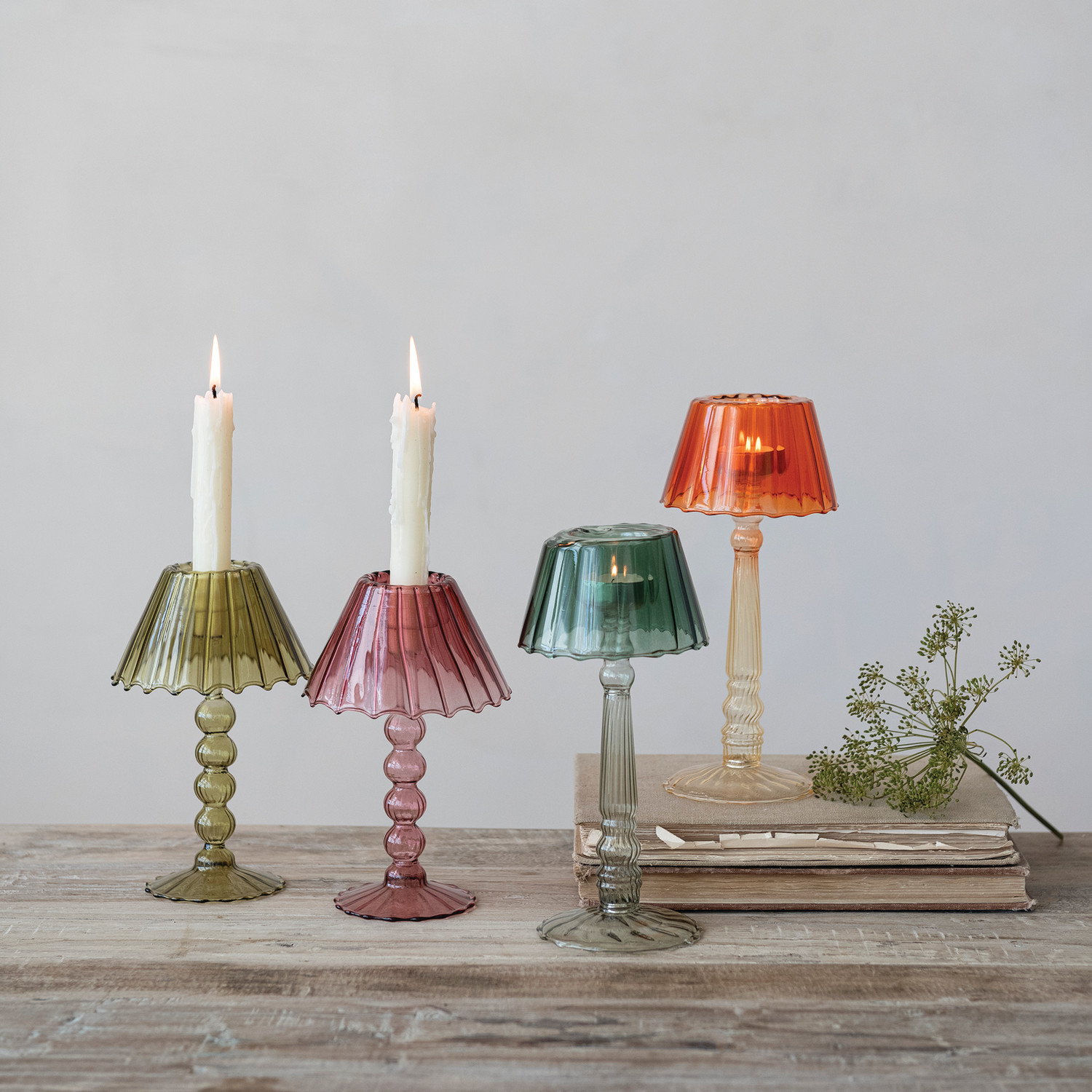 Glass Scalloped Table Light Tealight/Taper Holder, 2 Colors