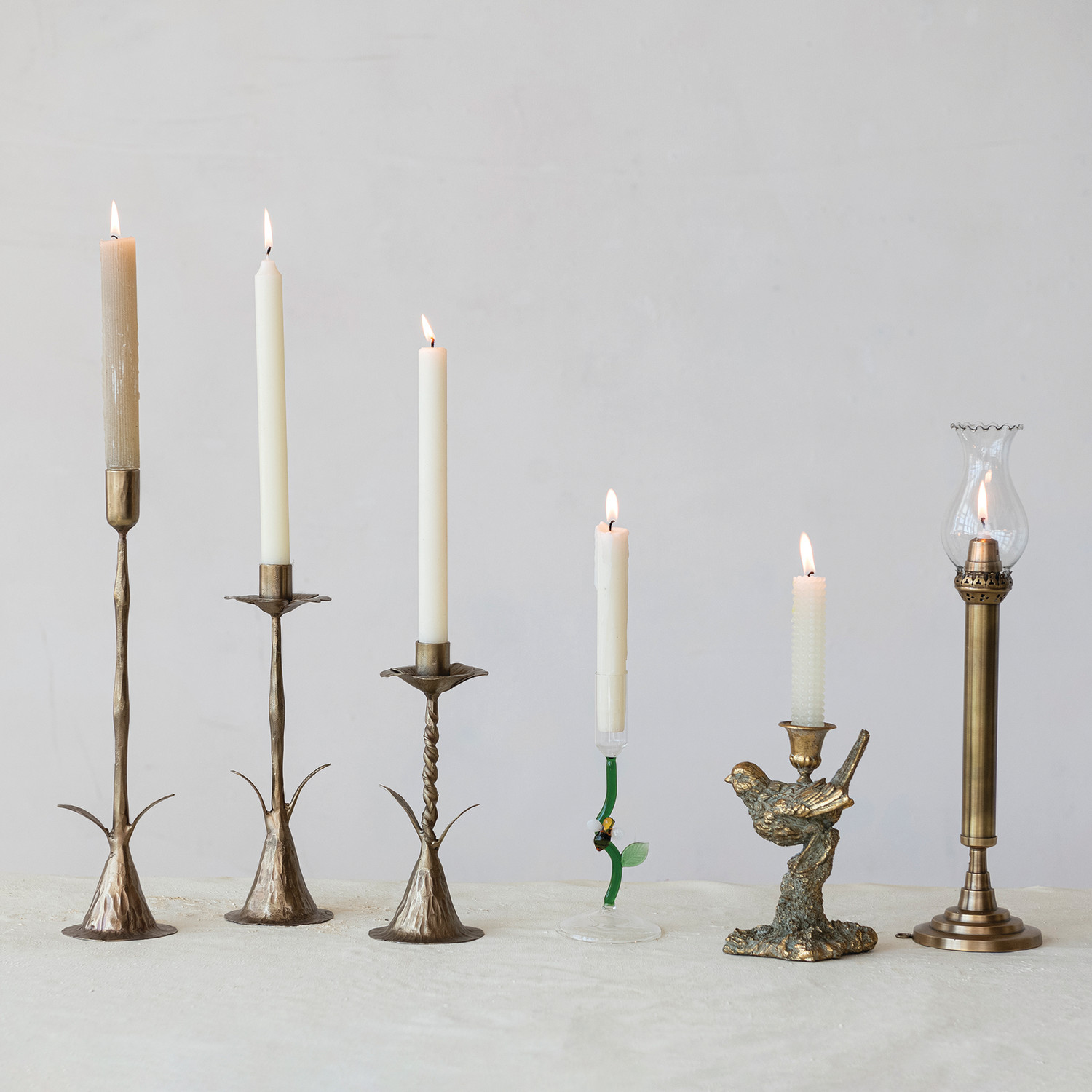 Hand-Blown Glass Taper Holder with Bee & Flower Stem, Green, Black & Yellow