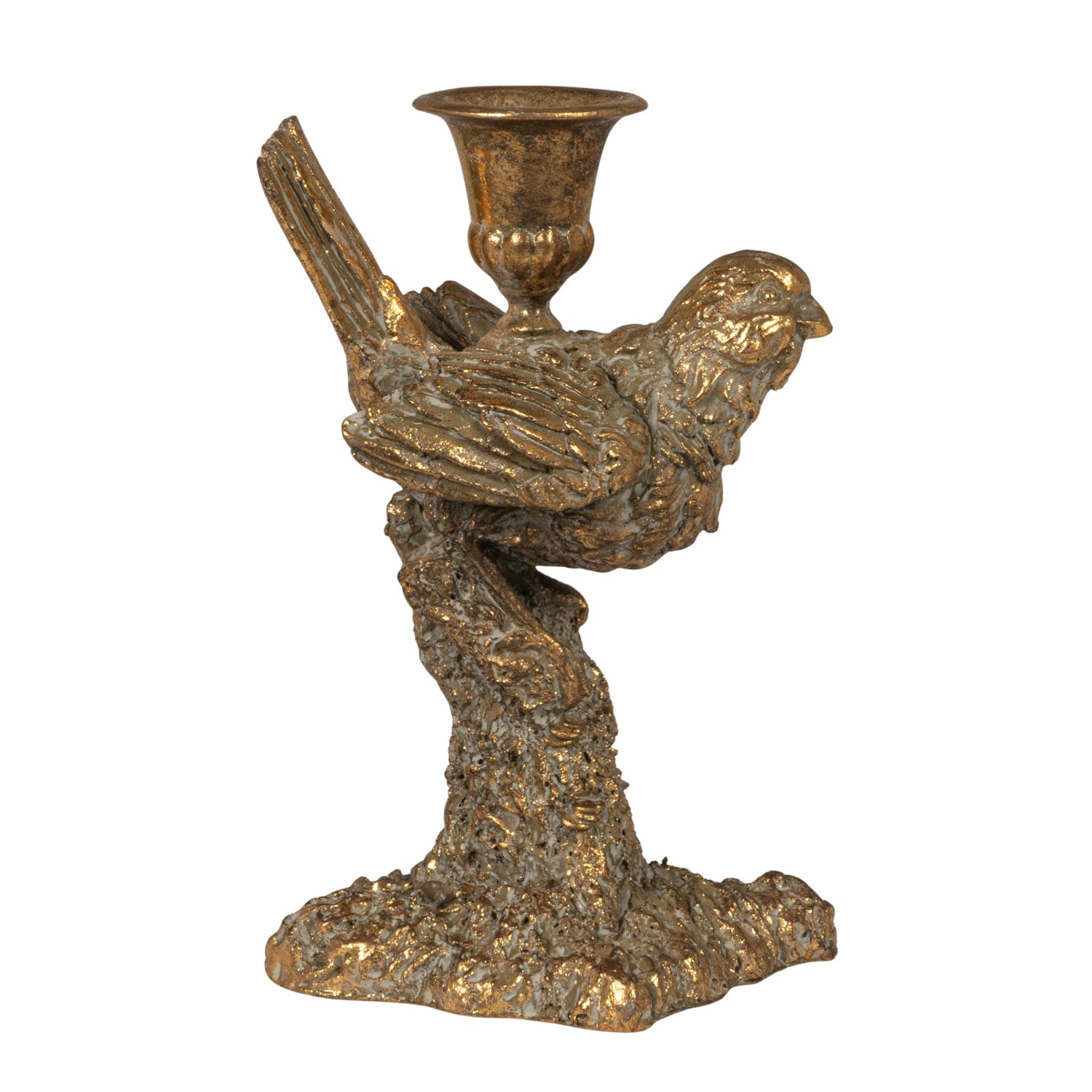 Resin Bird Shaped Taper Holder, Distressed Antique Gold Finish