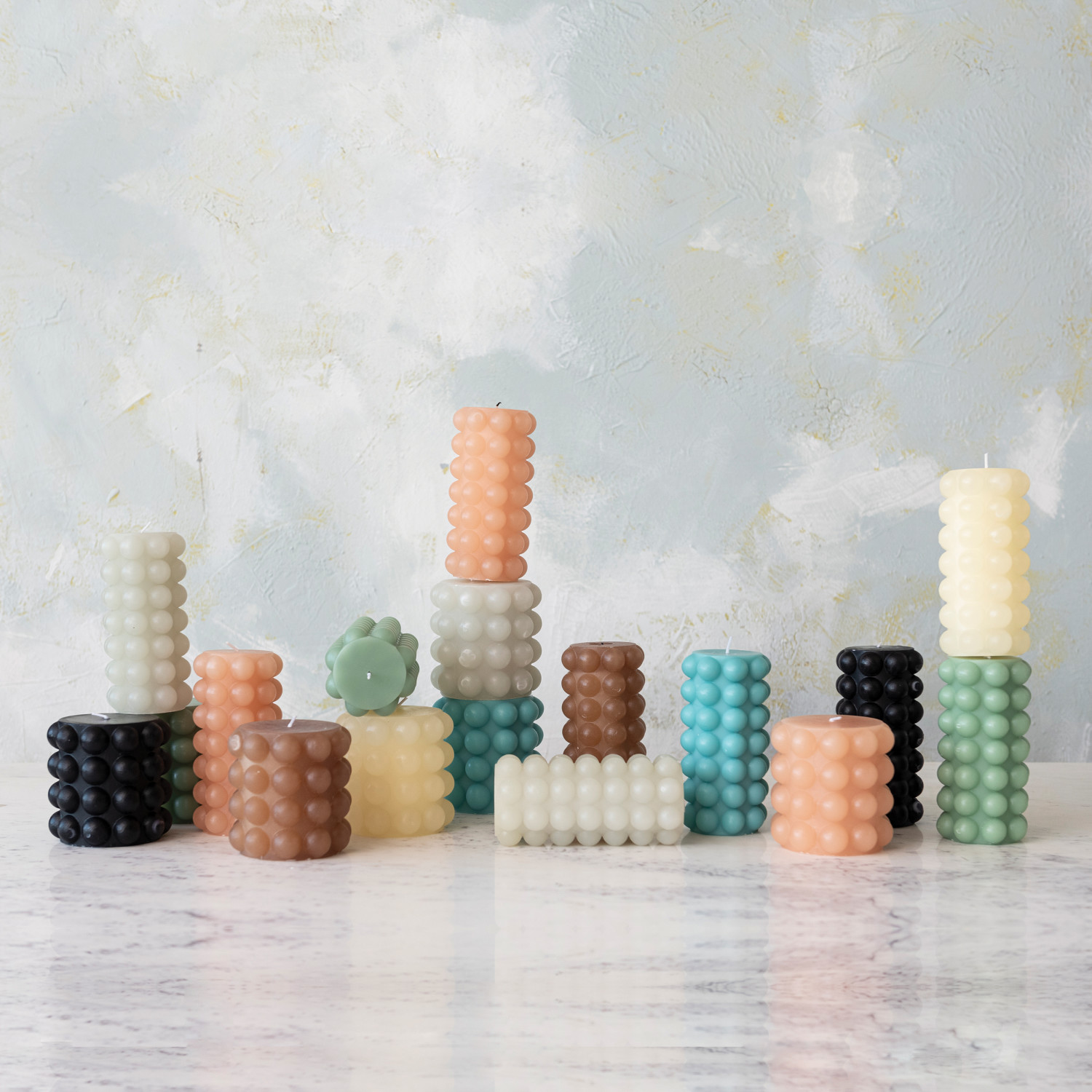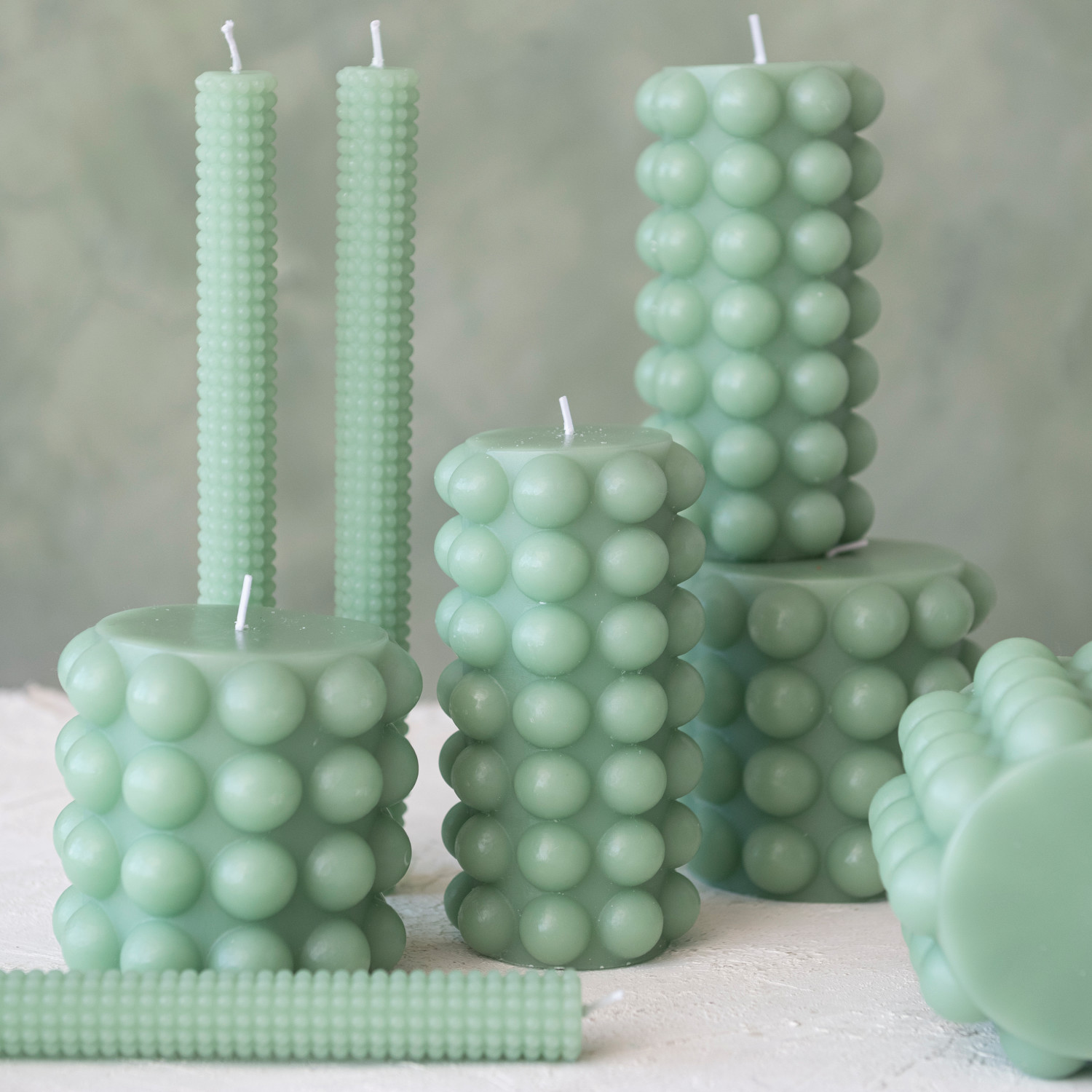 Unscented Hobnail Pillar Candle, Mint Color (Approximate Burn Time 50 Hours)