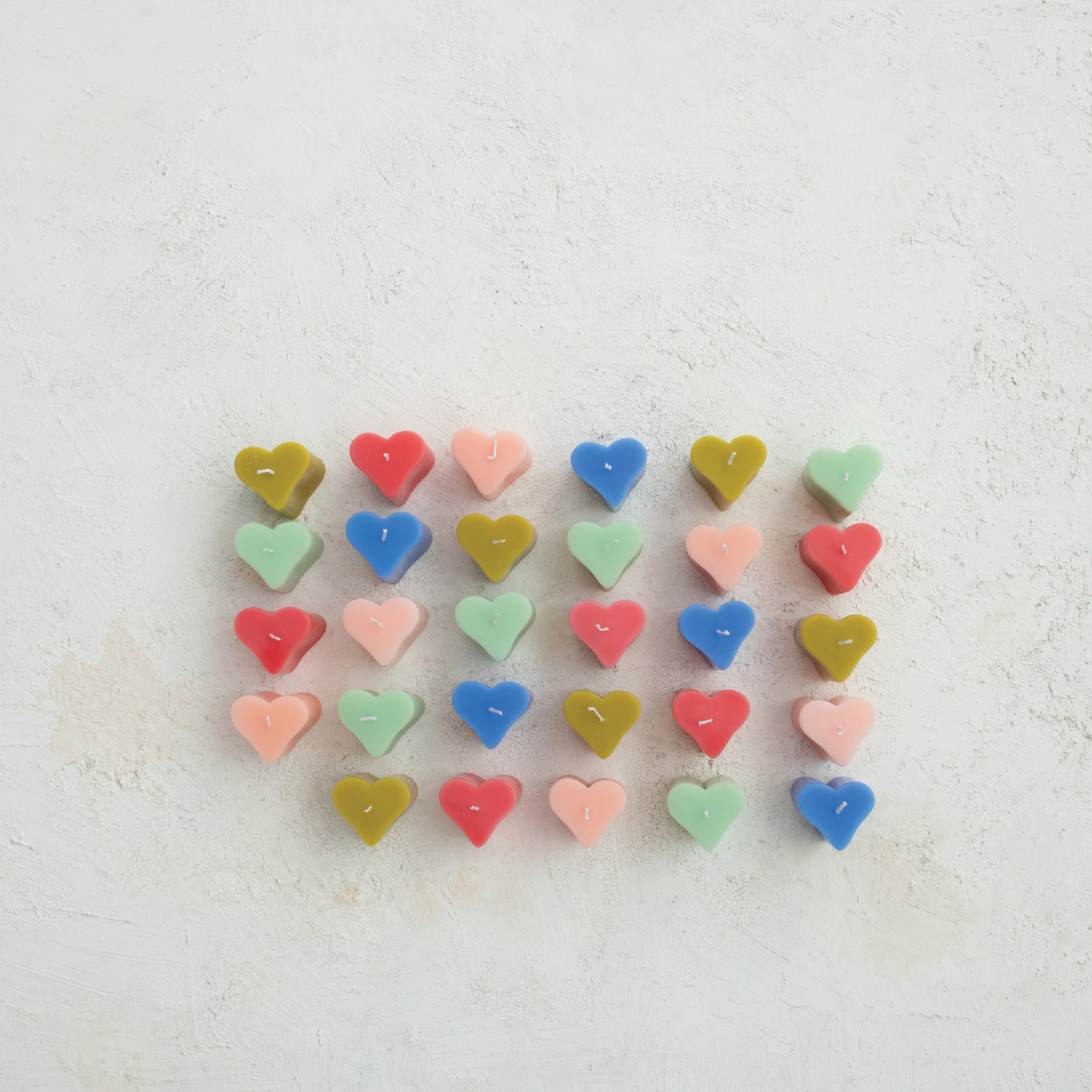 Unscented Heart Shaped Candles in Box, Set of 5, 5 Colors (Est. Burn Time 4 Hours)