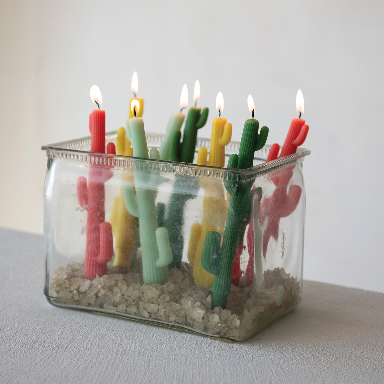 Unscented Cactus Shaped Taper Candles in Box, Set of 2 (Est. Burn Time 5 Hours)