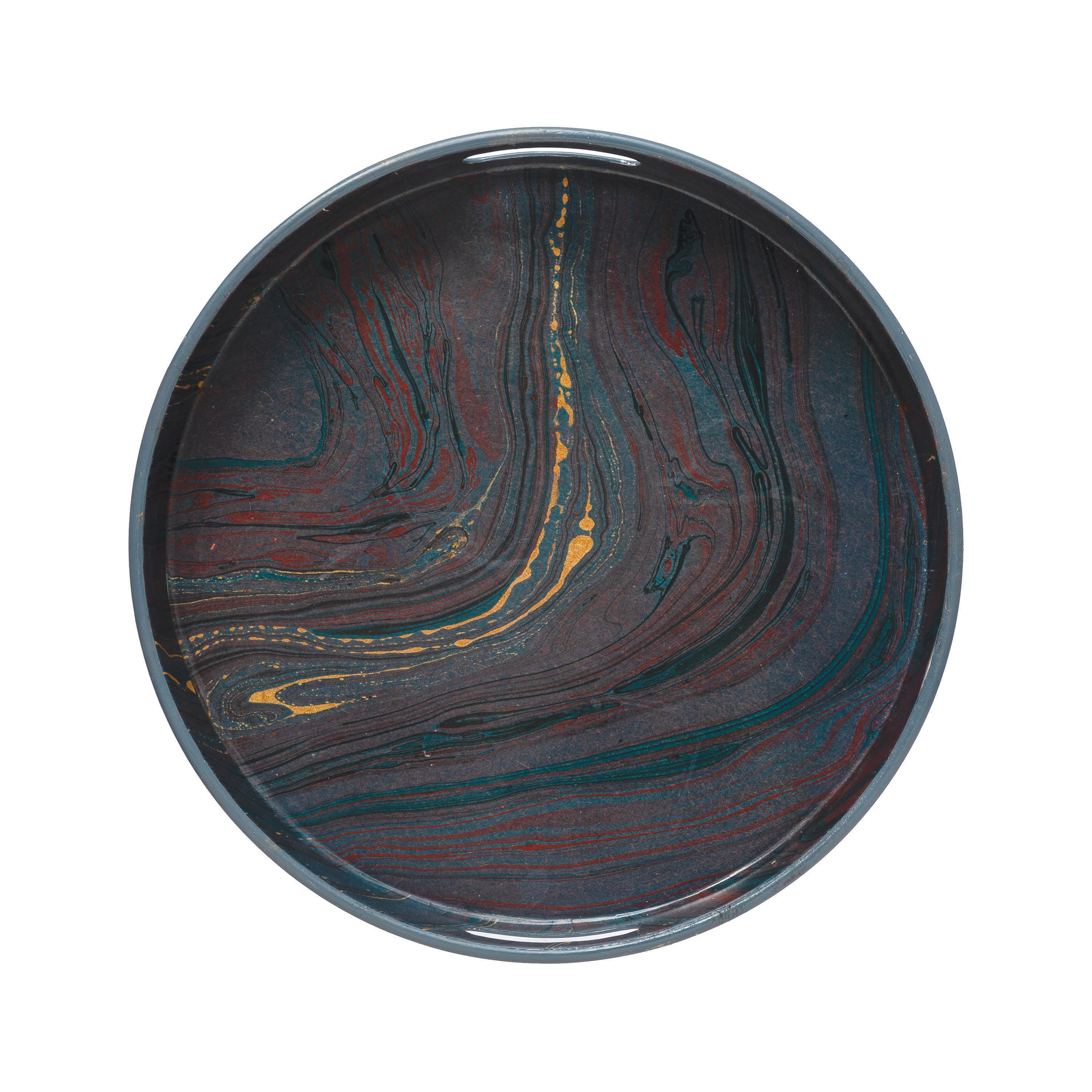 Catalog Name: 15-1/4" Round Decorative Enameled Metal Tray w/ Marbled Pattern & Handles, Multi Color ©