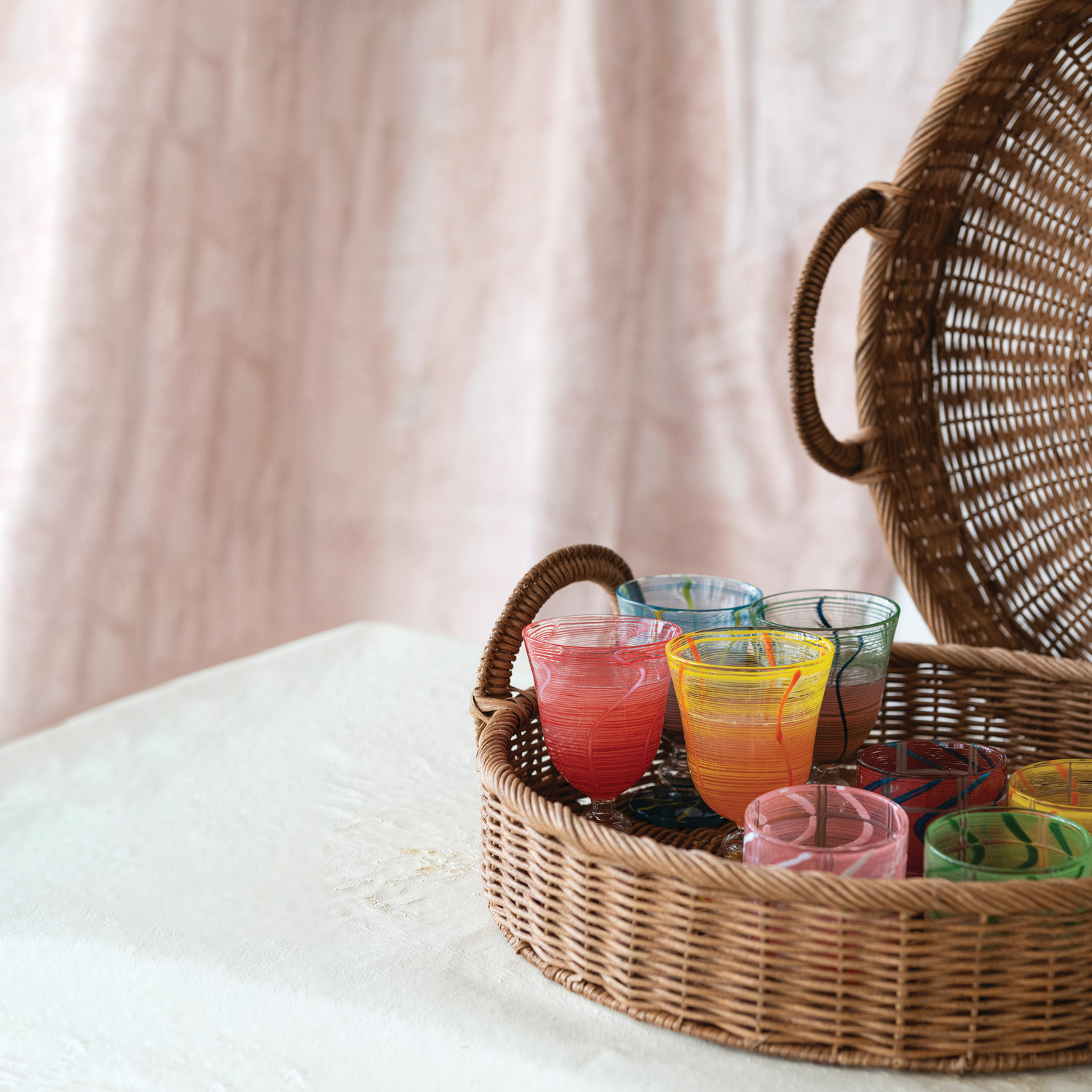 Decorative Woven Rattan Trays with Circle Handles, Natural, Set of 2
