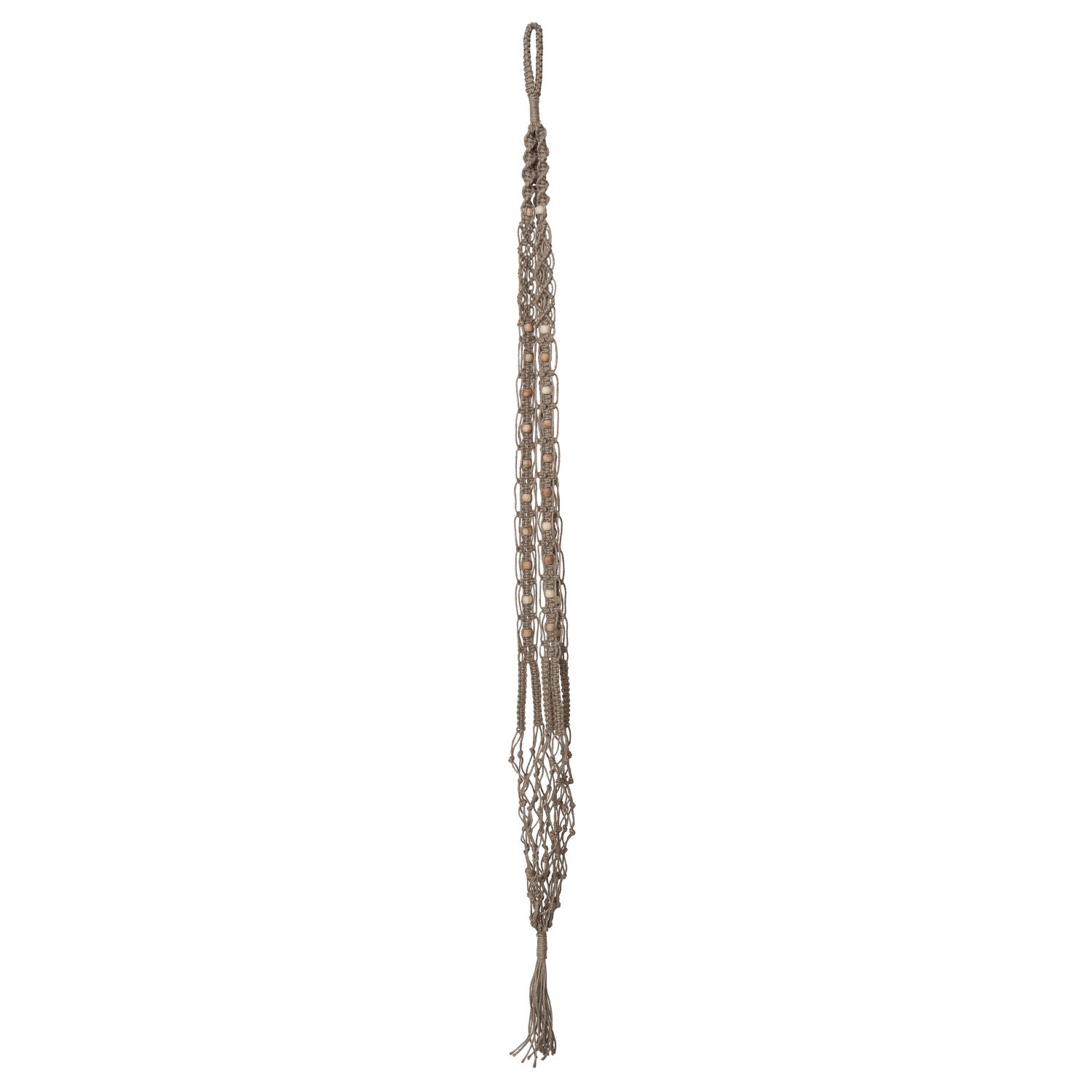 Catalog Name: 8" Round x 48"H Jute Macrame Plant Hanger w/ Wood Beads & Tassel, Natural