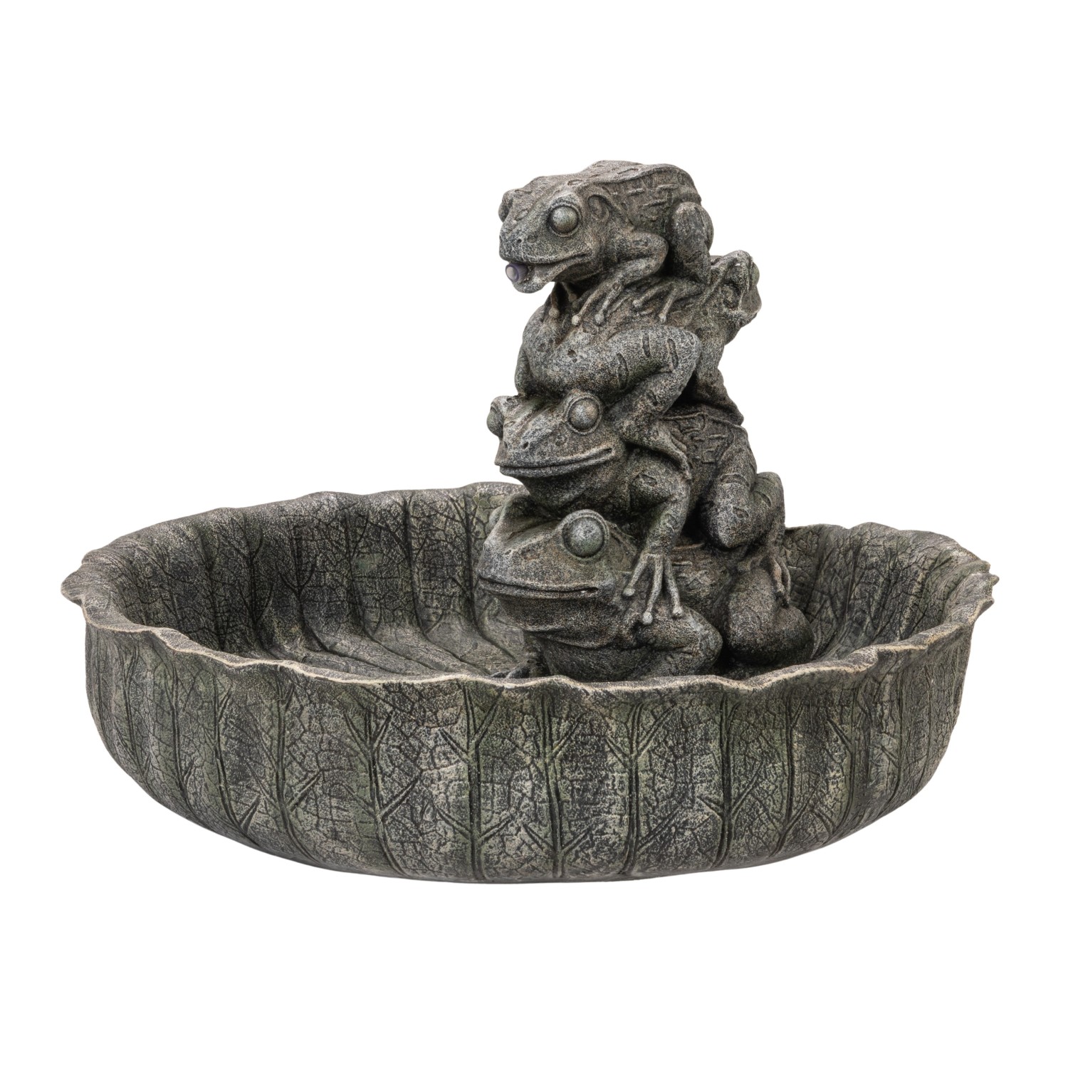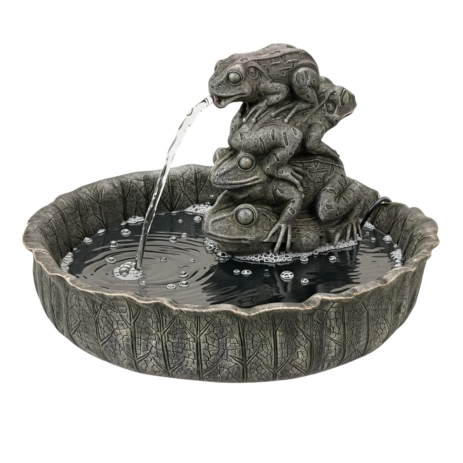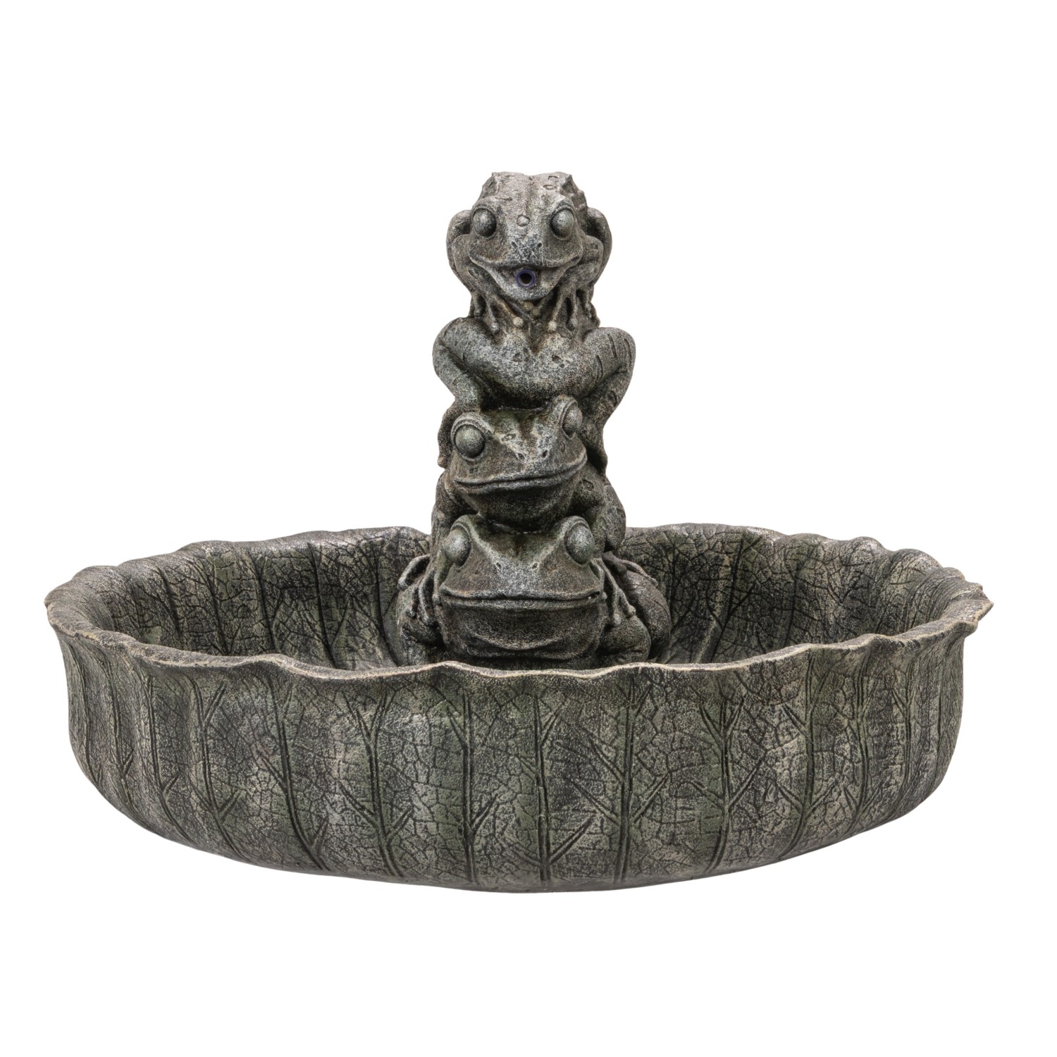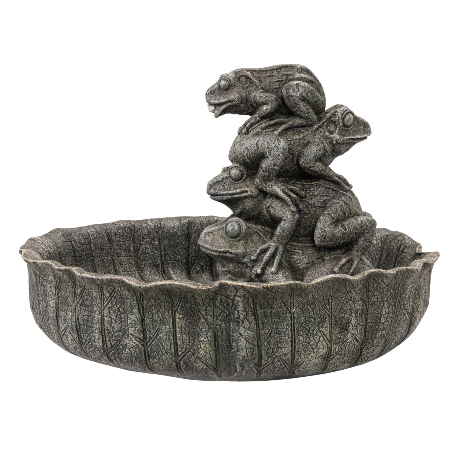 Resin Lotus Leaf Shaped Fountain with Frogs, 6' Cord, Verdigris Finish (Includes Pump Kit)