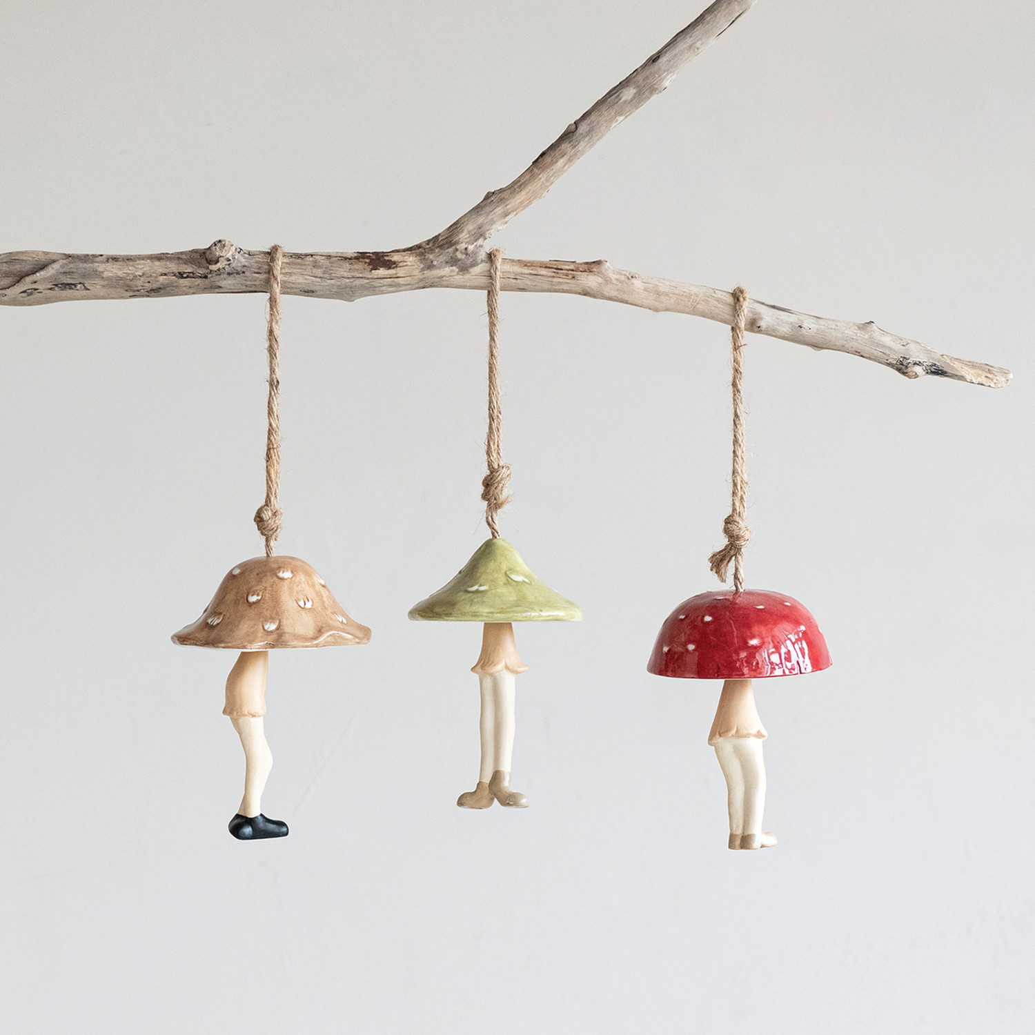 Hand-Painted Hanging Stoneware Mushroom Person Bell, 3 Styles (Each One Will Vary)