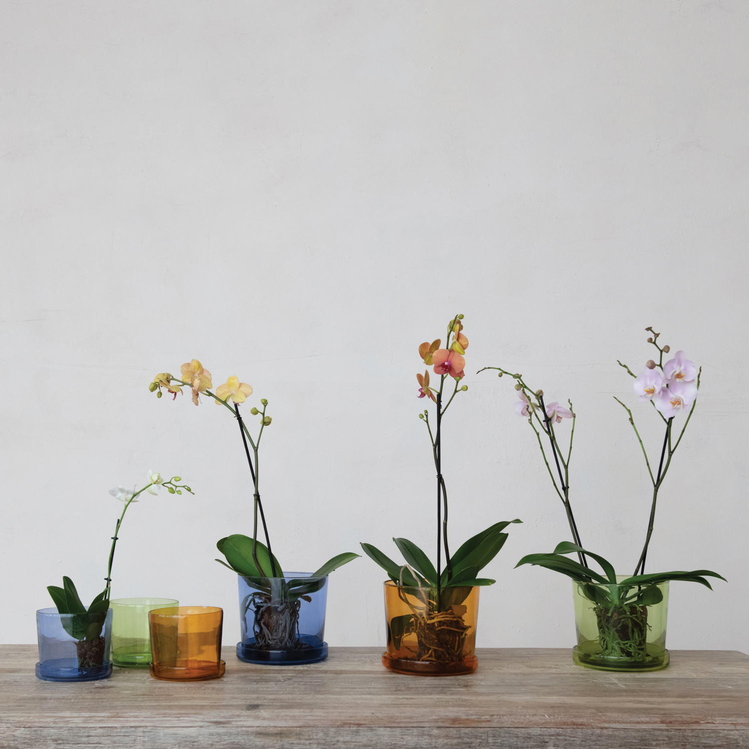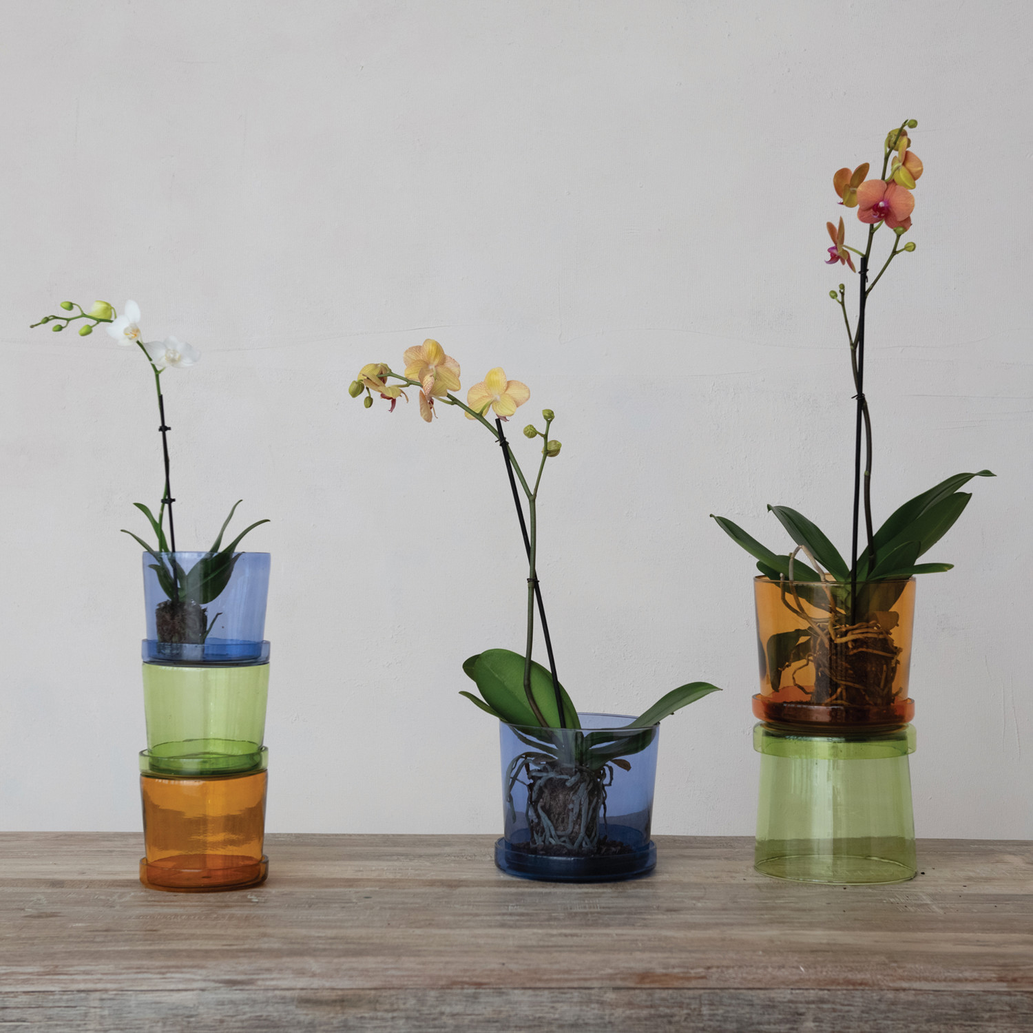 Hand-Blown Recycled Glass Planter w/ Saucer, Set of 2, 3 Colors (Holds 5" Pot)