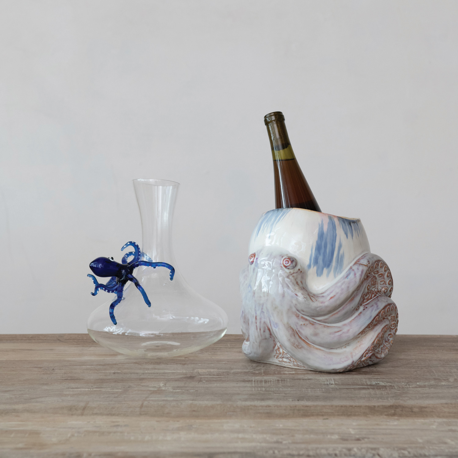 Stoneware Planter w/ Octopus, Reactive Glaze (Holds 4" Pot) (Each One Will Vary)
