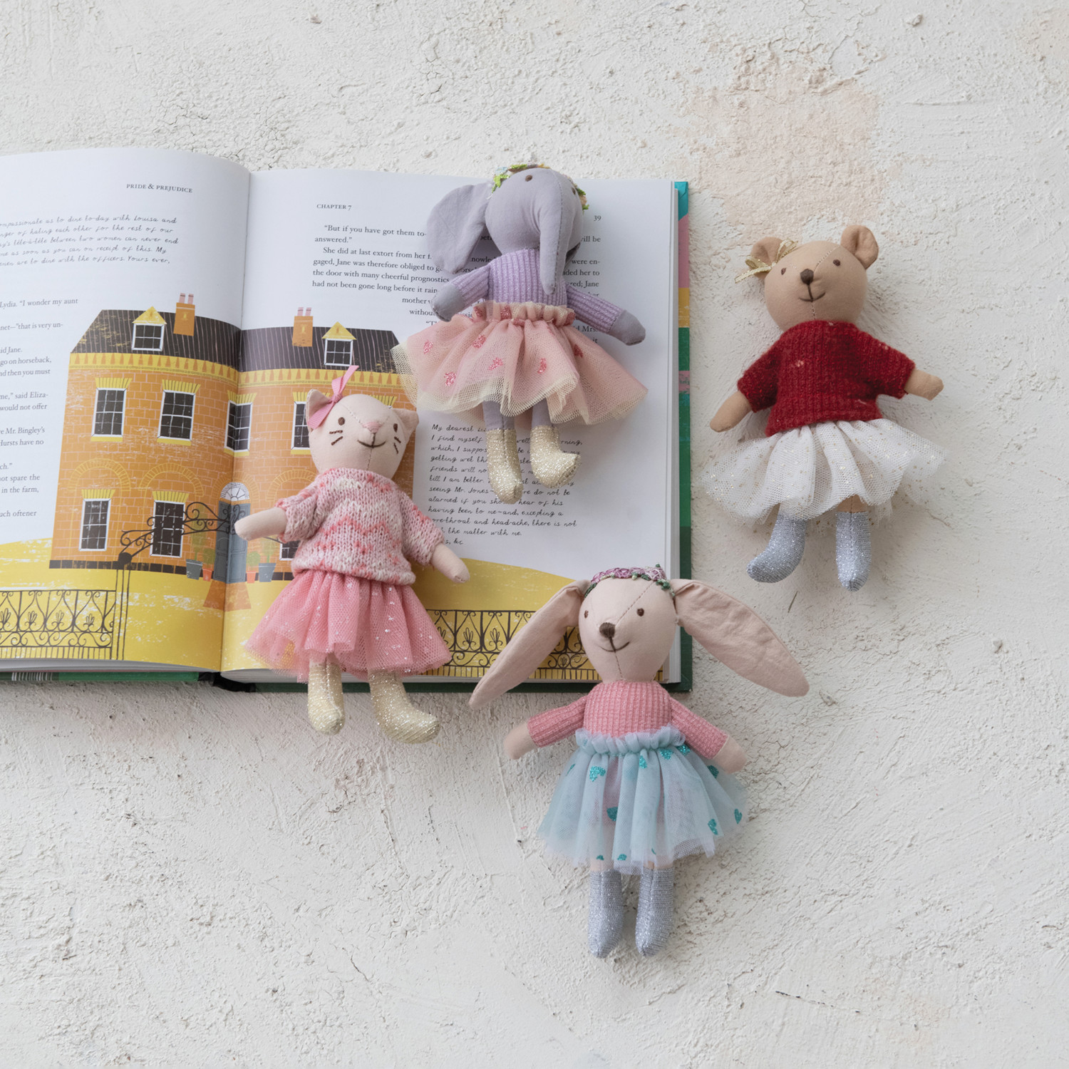 Catalog Name: 3"L x 2"W x 7"H Plush Cotton Animal in Clothes/Dress, Multi Color, 4 Styles