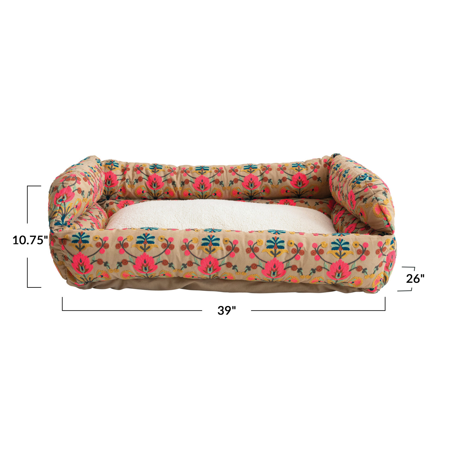 Catalog Name: 39"L x 26"W x 10-3/4"H Cotton Embroidered & Sherpa Pet Bed w/ Pattern & Washable Cover, Multi Color