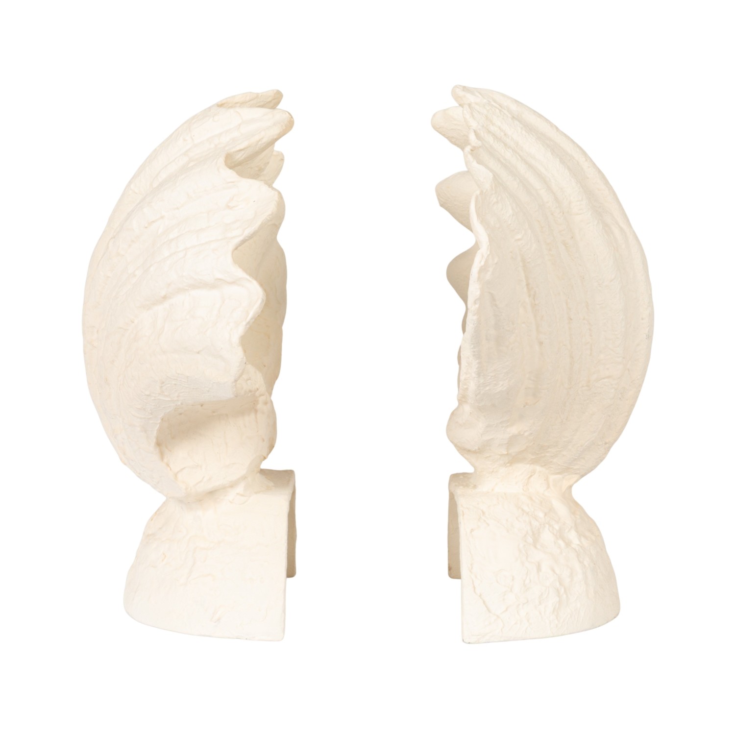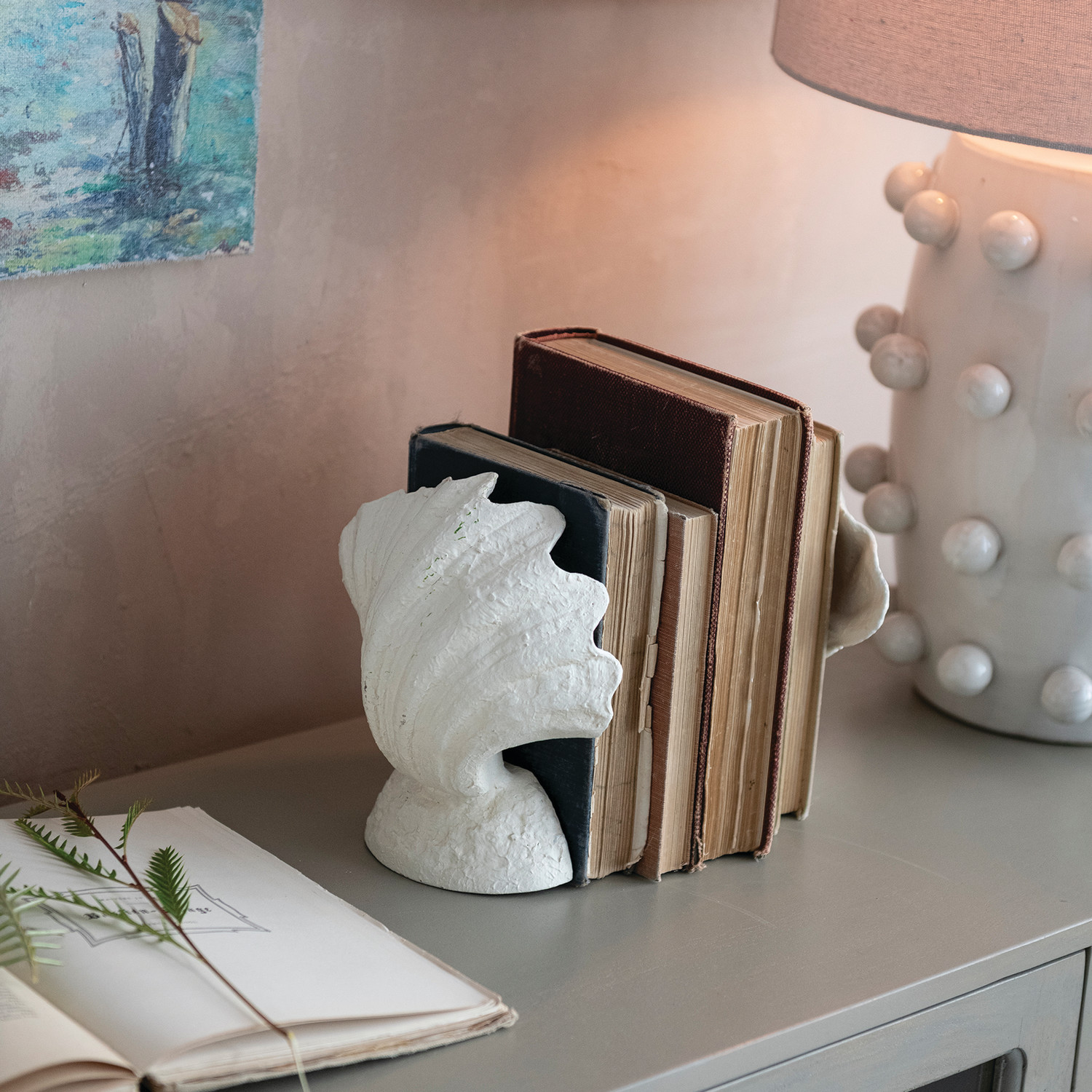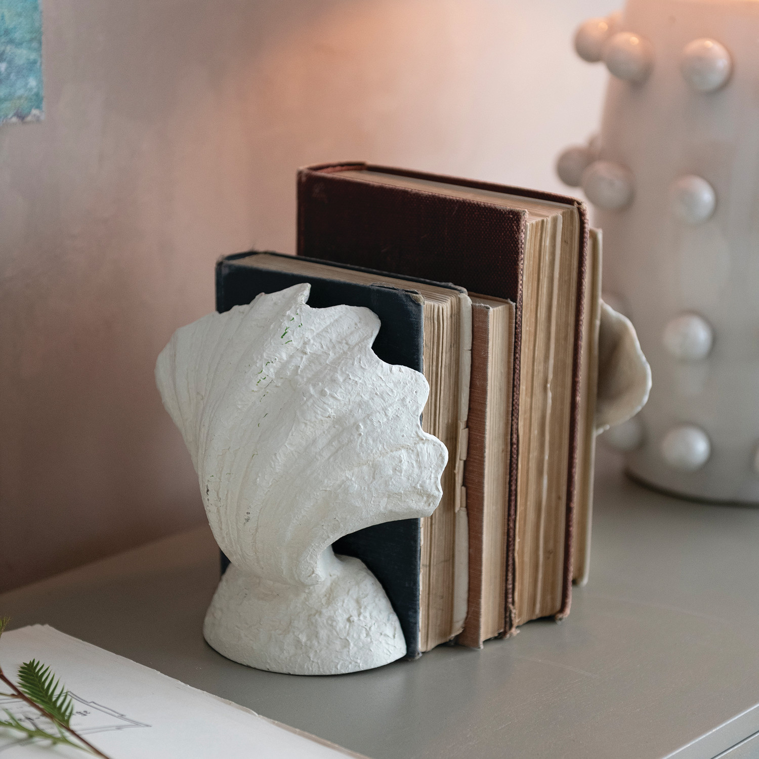 Cast Iron Shell Shaped Bookends, Matte Finish, Cream Color, Set of 2