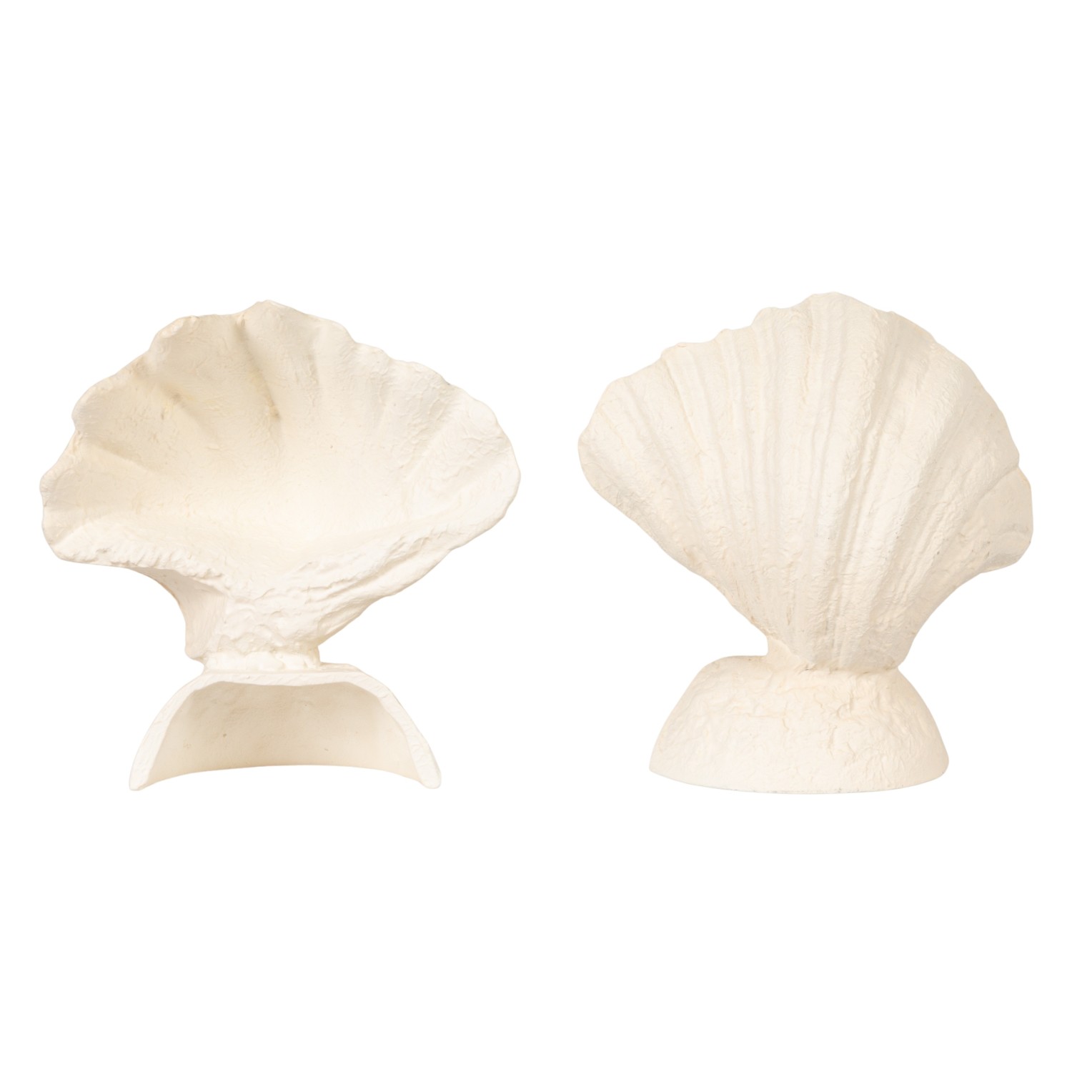 Catalog Name: 7-1/2"L x 3-1/4"W x 7-1/2"H Cast Iron Shell Shaped Bookends, Matte Finish, Cream Color, Set of 2
