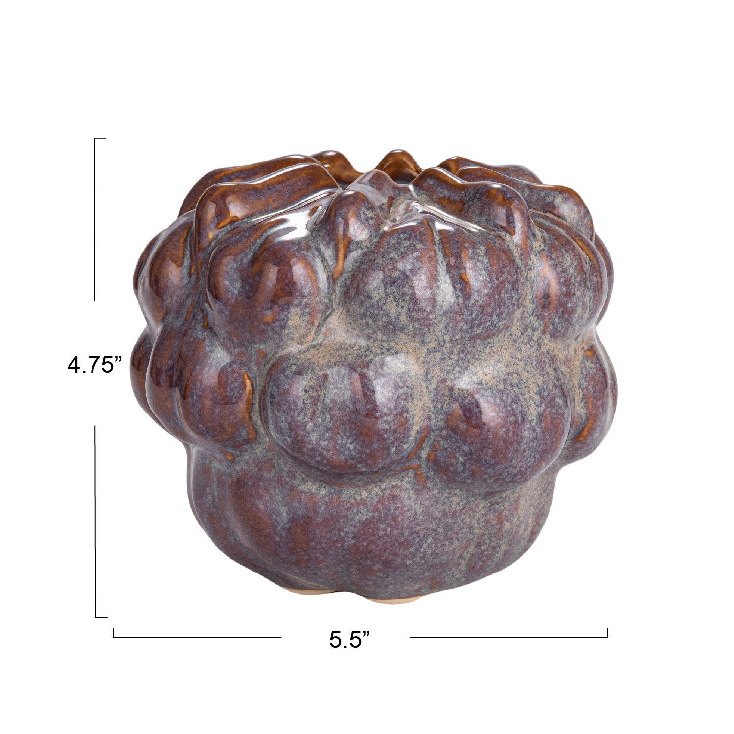 Catalog Name: 5-1/2"L x 5-1/4"W x 4-3/4"H Stoneware Formed Vase, Reactive Glaze, Multi Color (Each One Will Vary)