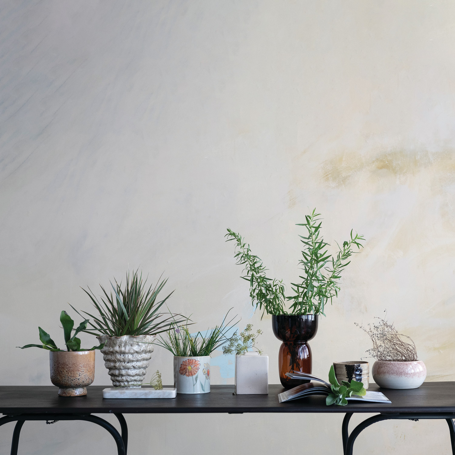 Catalog Name: 9" Round x 8-1/4"H Stoneware Organic Shaped Vase, Reactive Glaze, Volcano Finish, Cream Color (Each One Will Vary)