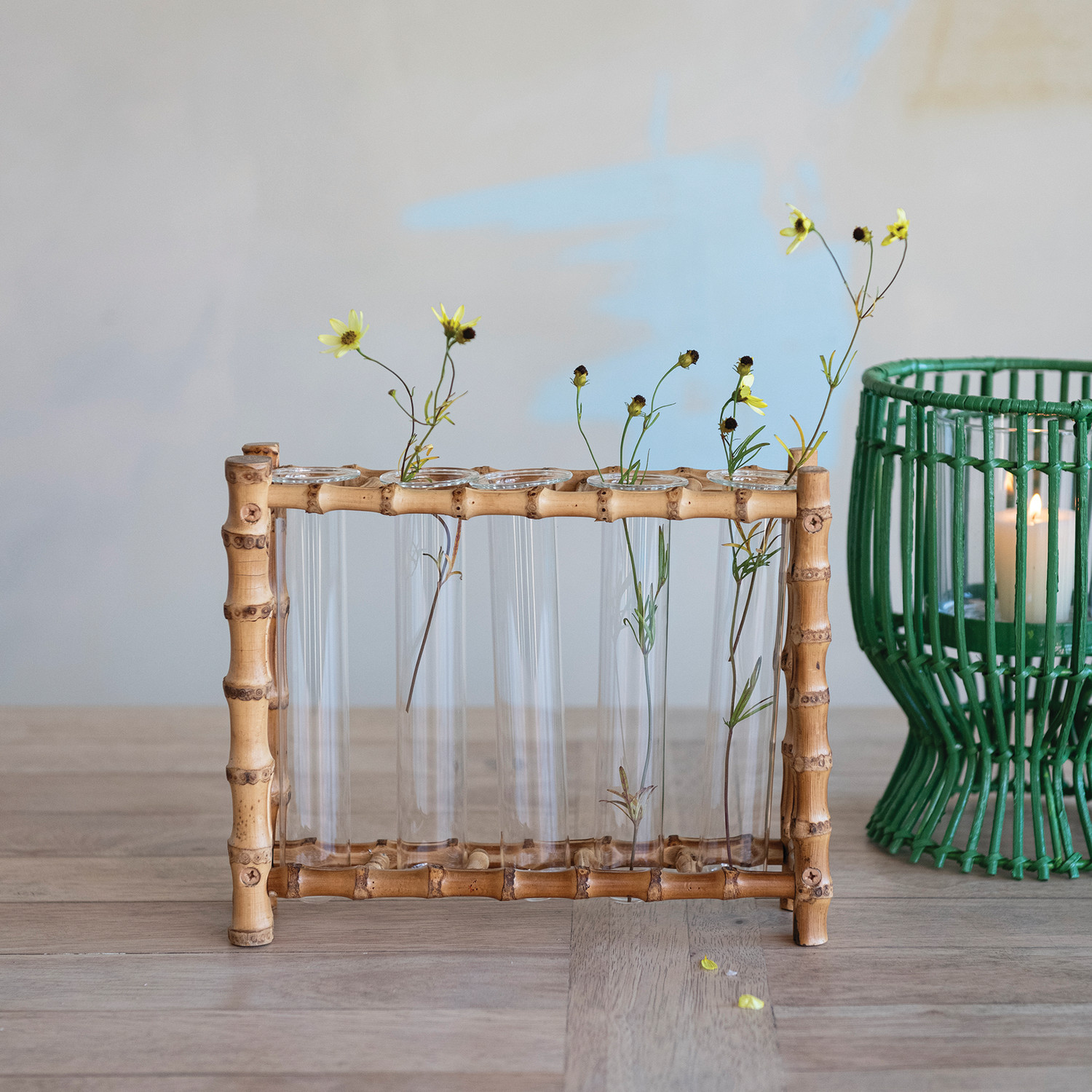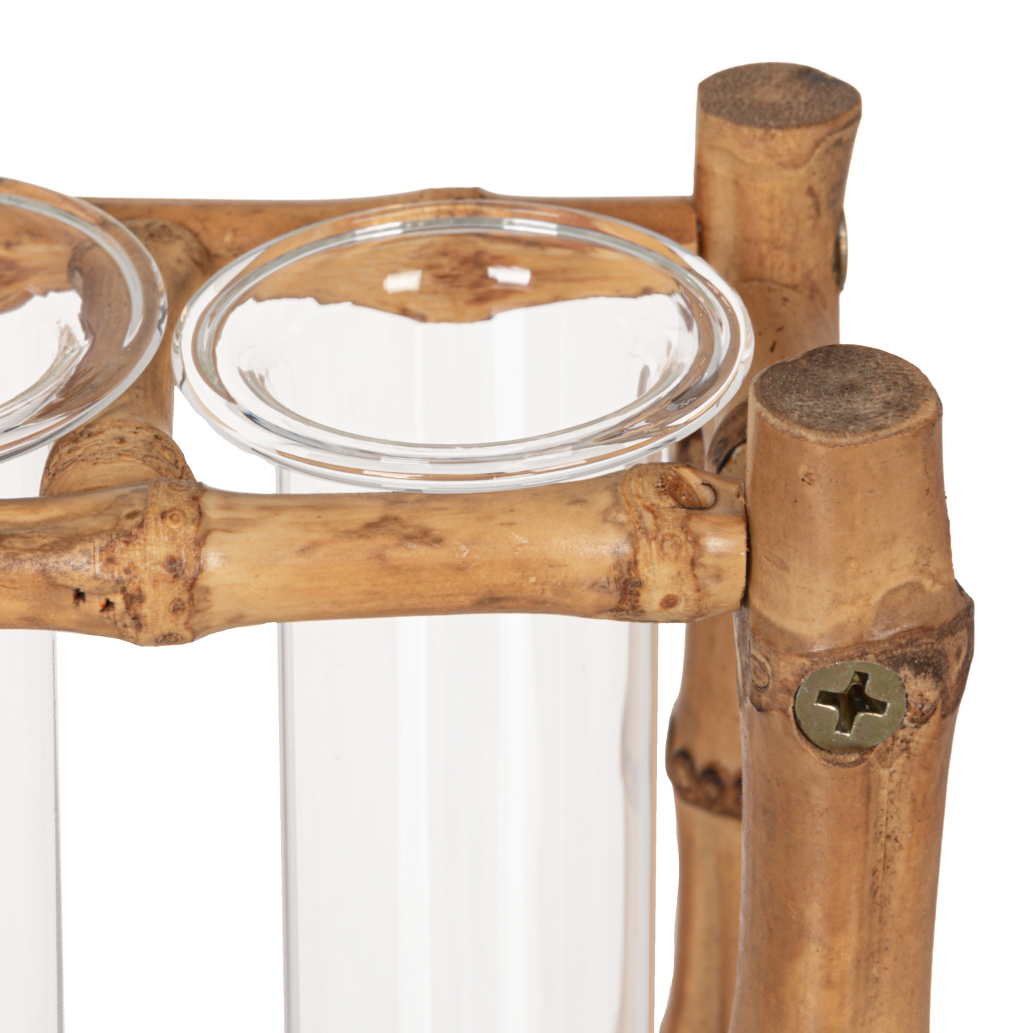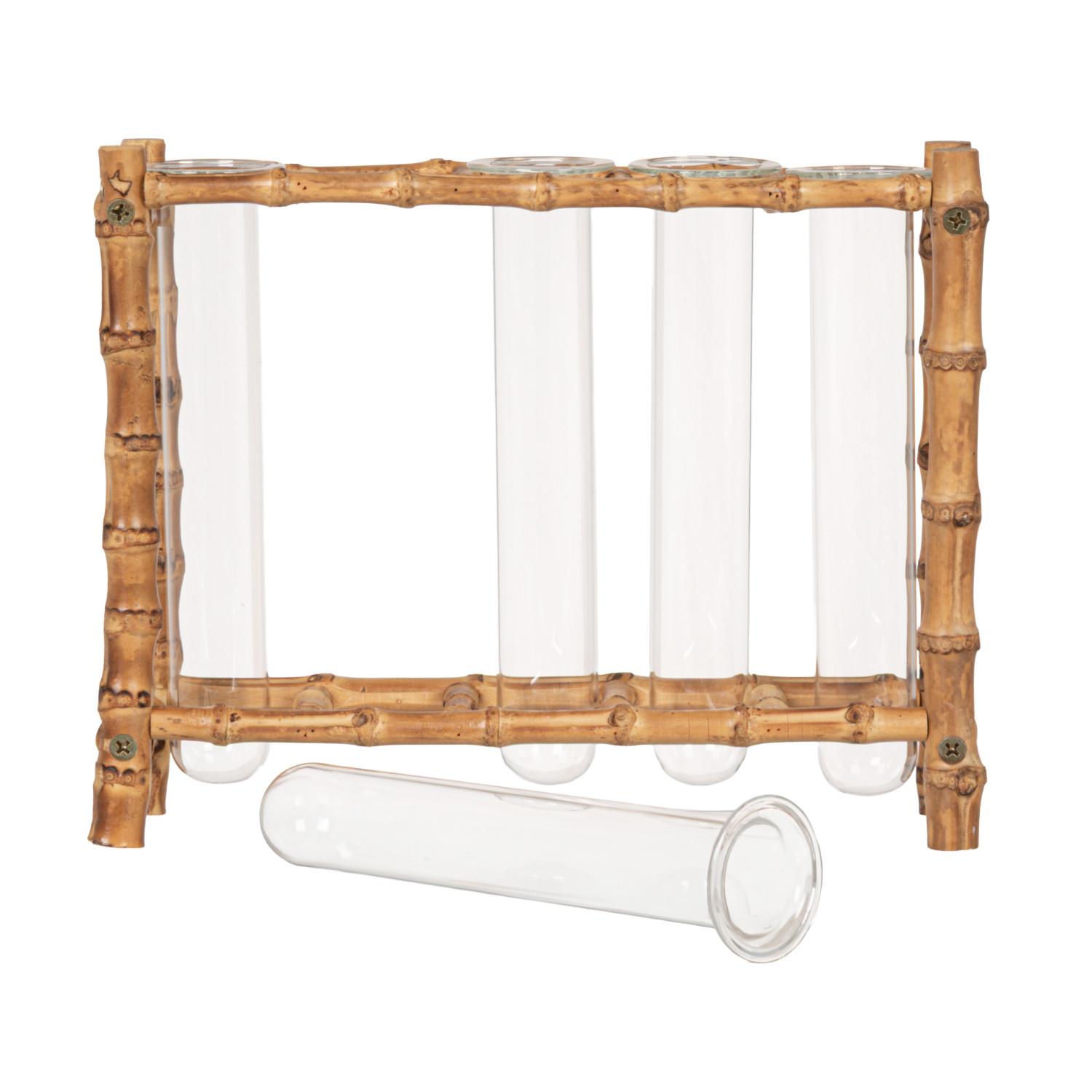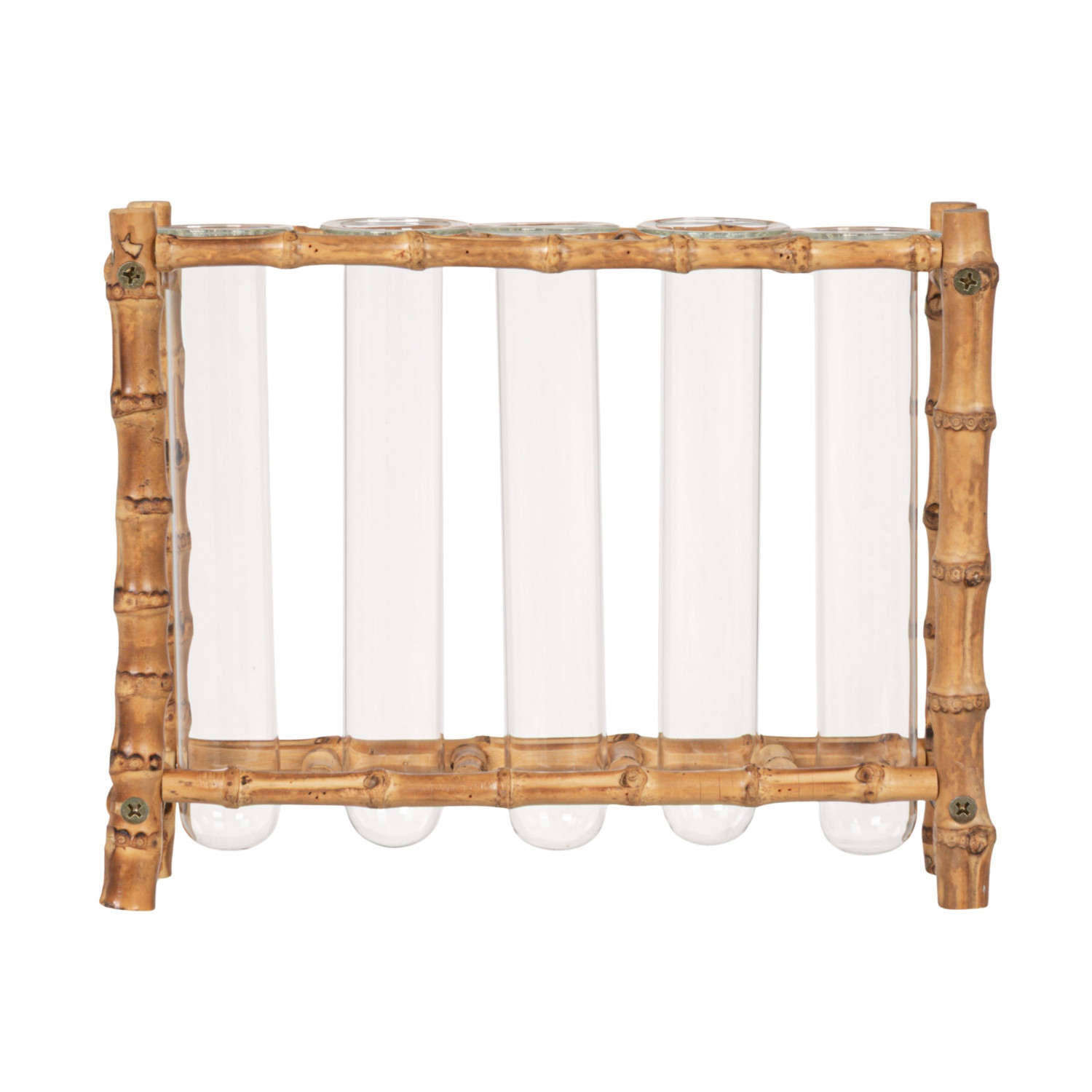 Bamboo Stand with 5 Glass Test Tube Vases, Natural