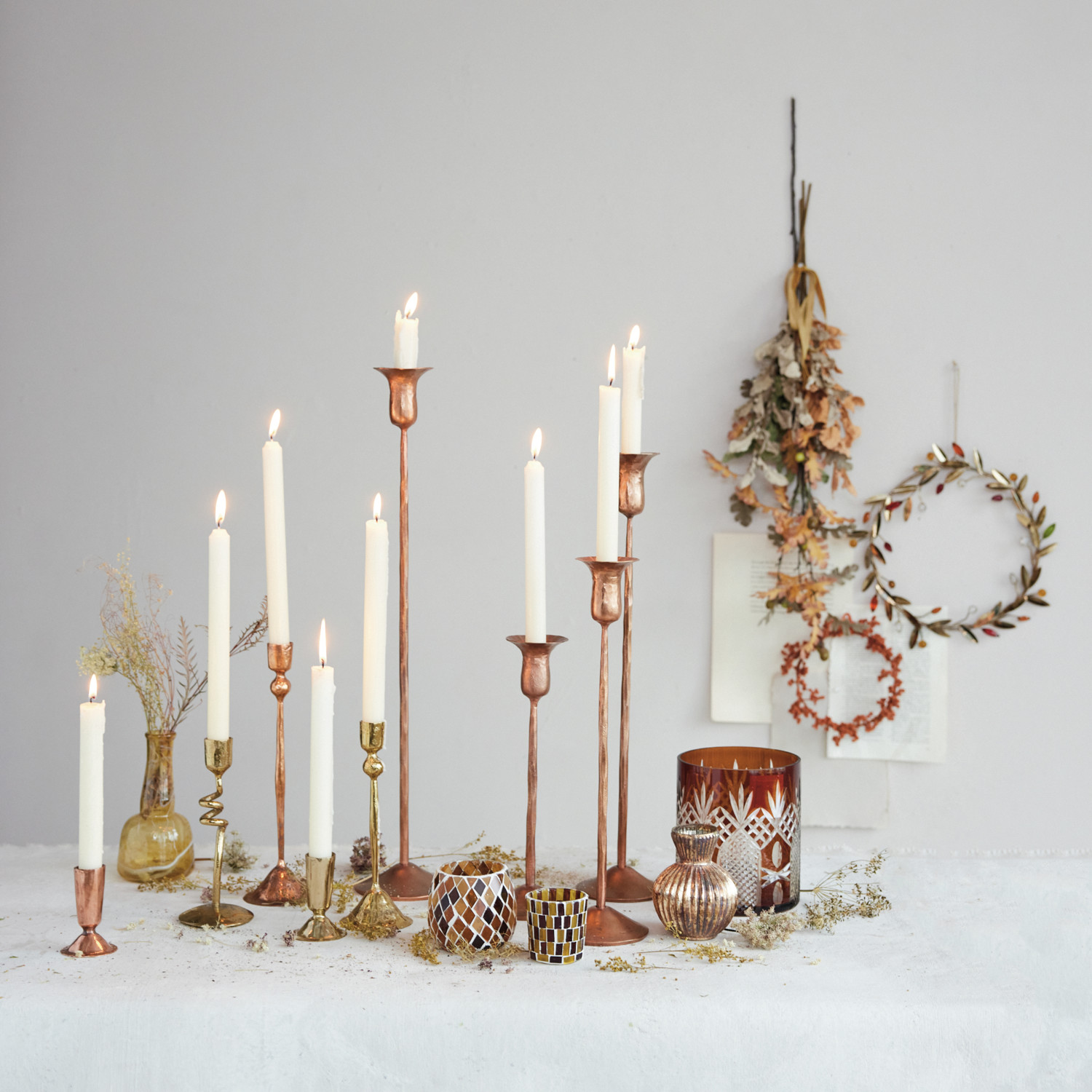 Hand-Forged Iron Taper Holder, Brass Finish