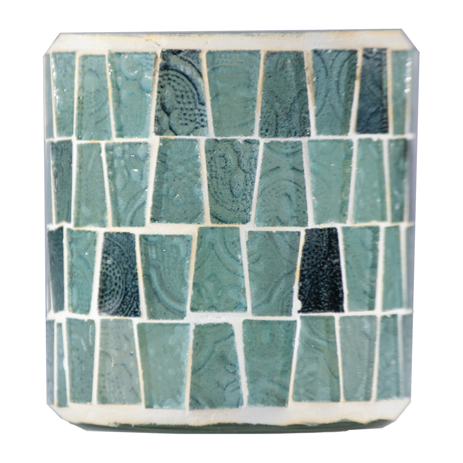 Glass Mosaic Tealight/Votive Holder, Blue & White