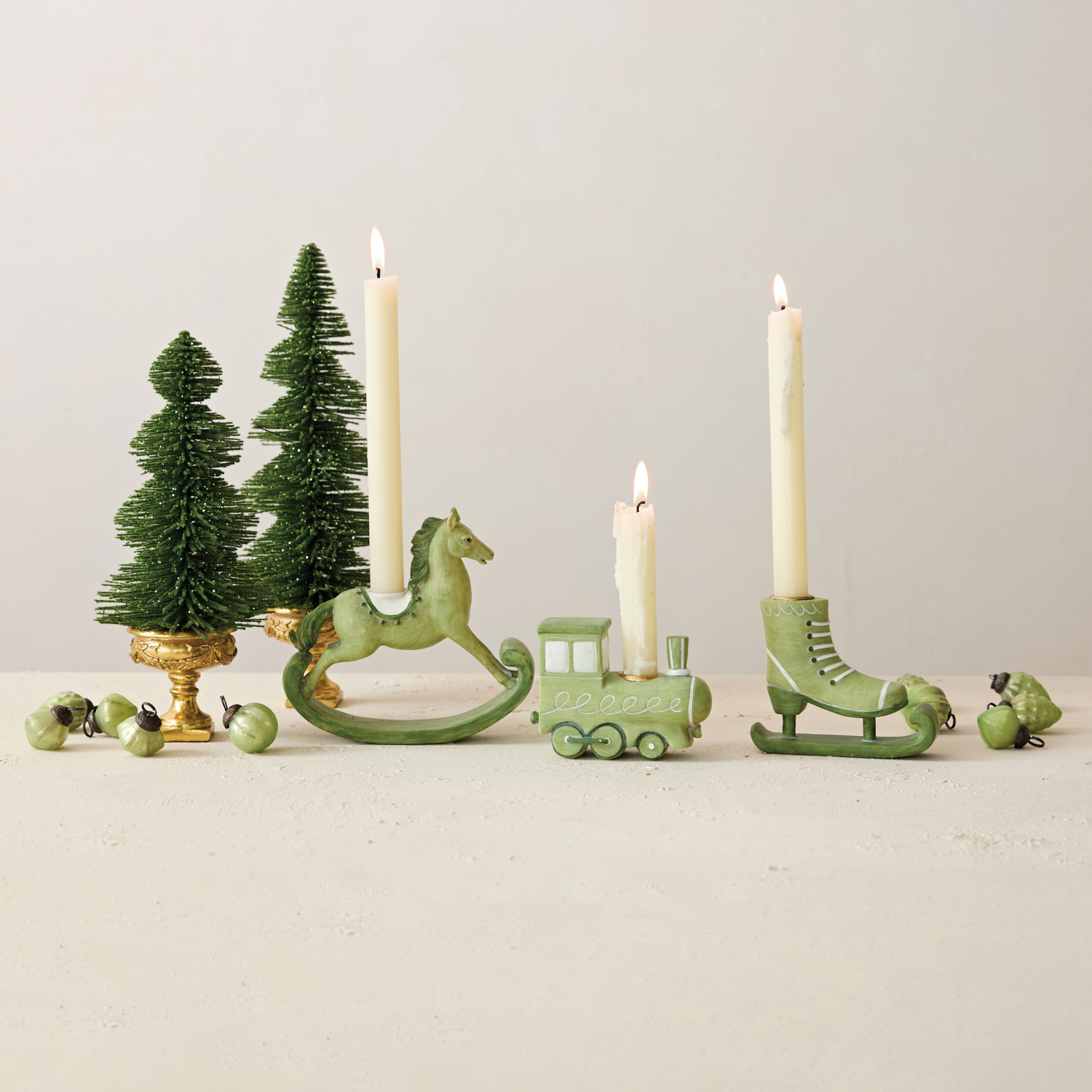 Resin Train Shaped Taper Holder, Green ©
