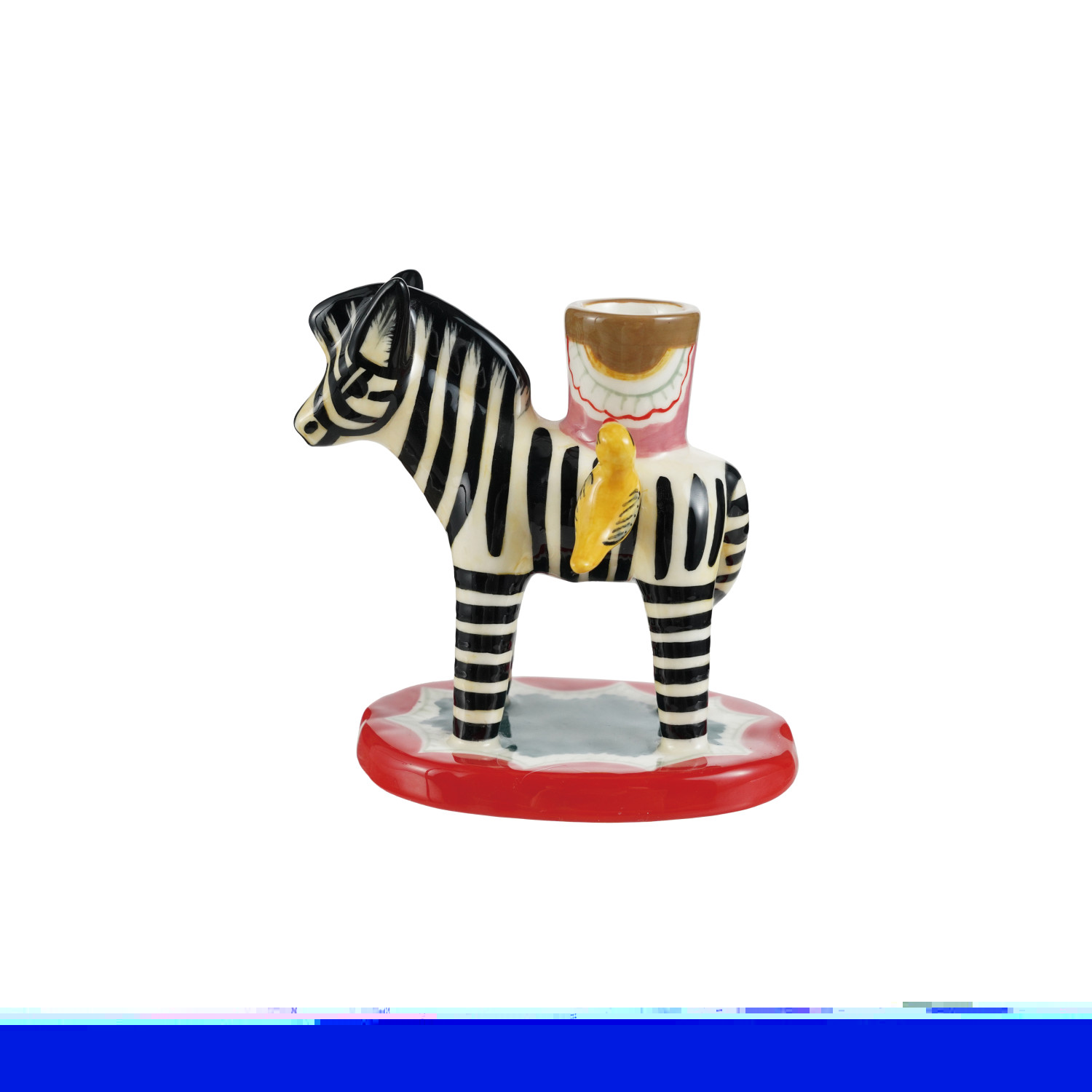 Catalog Name: 4-3/4"L x 3"W x 4-1/2"H Hand-Painted Stoneware Vintage Reproduction Zebra Shaped Taper Holder w/ Birds, Multi Color