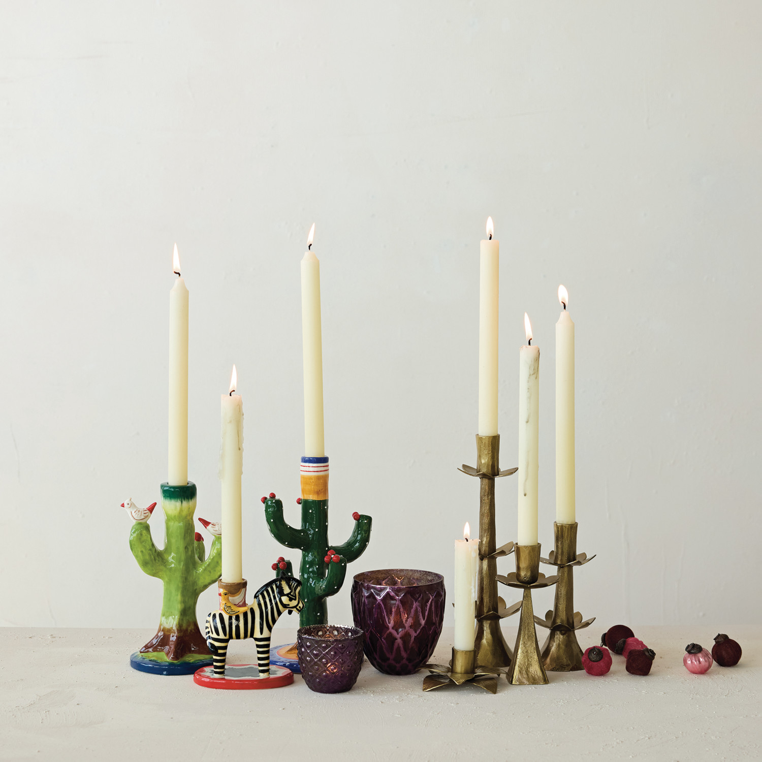 Hand-Forged Metal Flower Shaped Taper Holder, Antique Brass Finish