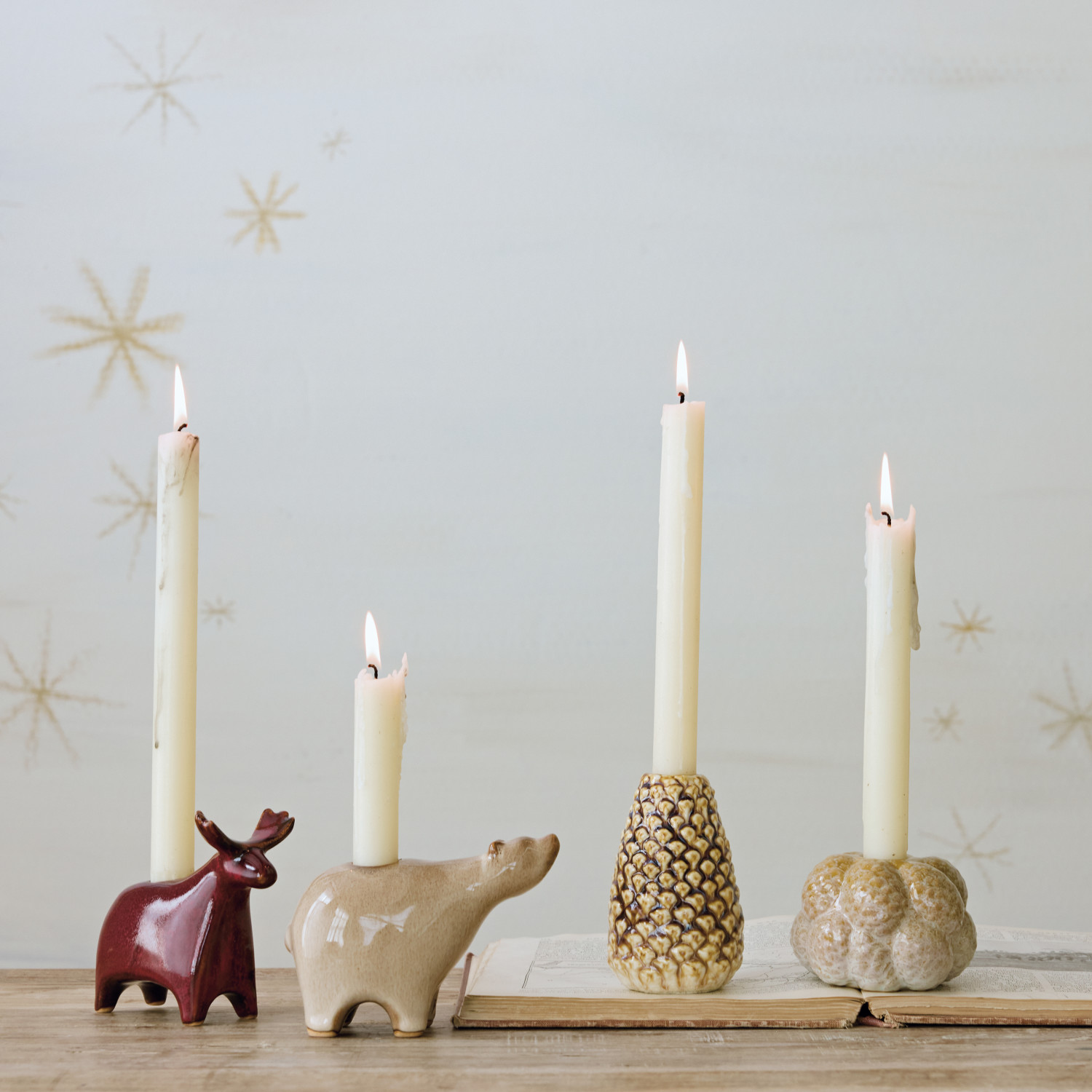 Stoneware Animal Shaped Taper Holder, 2 Styles (Each One Will Vary)