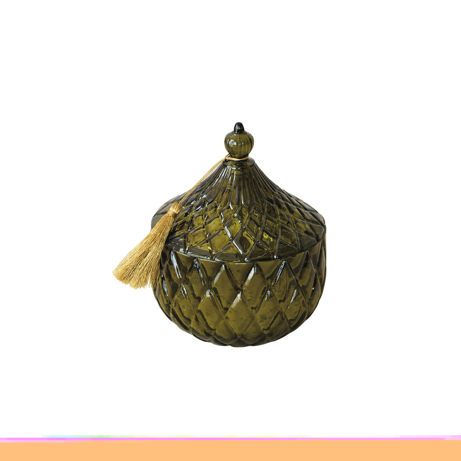 Catalog Name: 5-3/4" Round x 7-1/4"H 21.9 oz. Embossed Mercury Glass Walk In The Woods Scented Jar Candle w/ Lid & Gold Color Tassel, Green