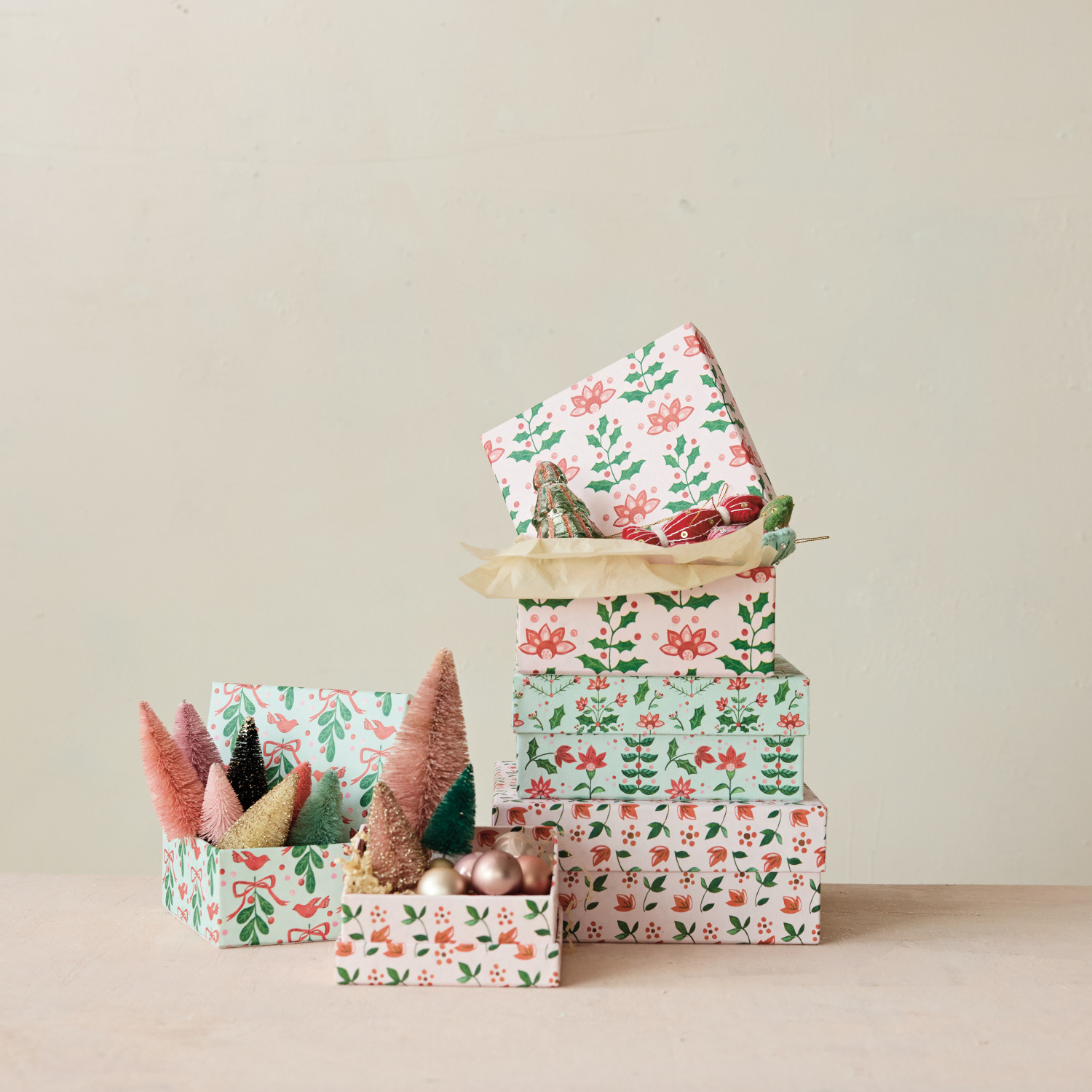 Handmade Printed Recycled Paper Gift Boxes with Botanical Patterns, Set of 5 ©