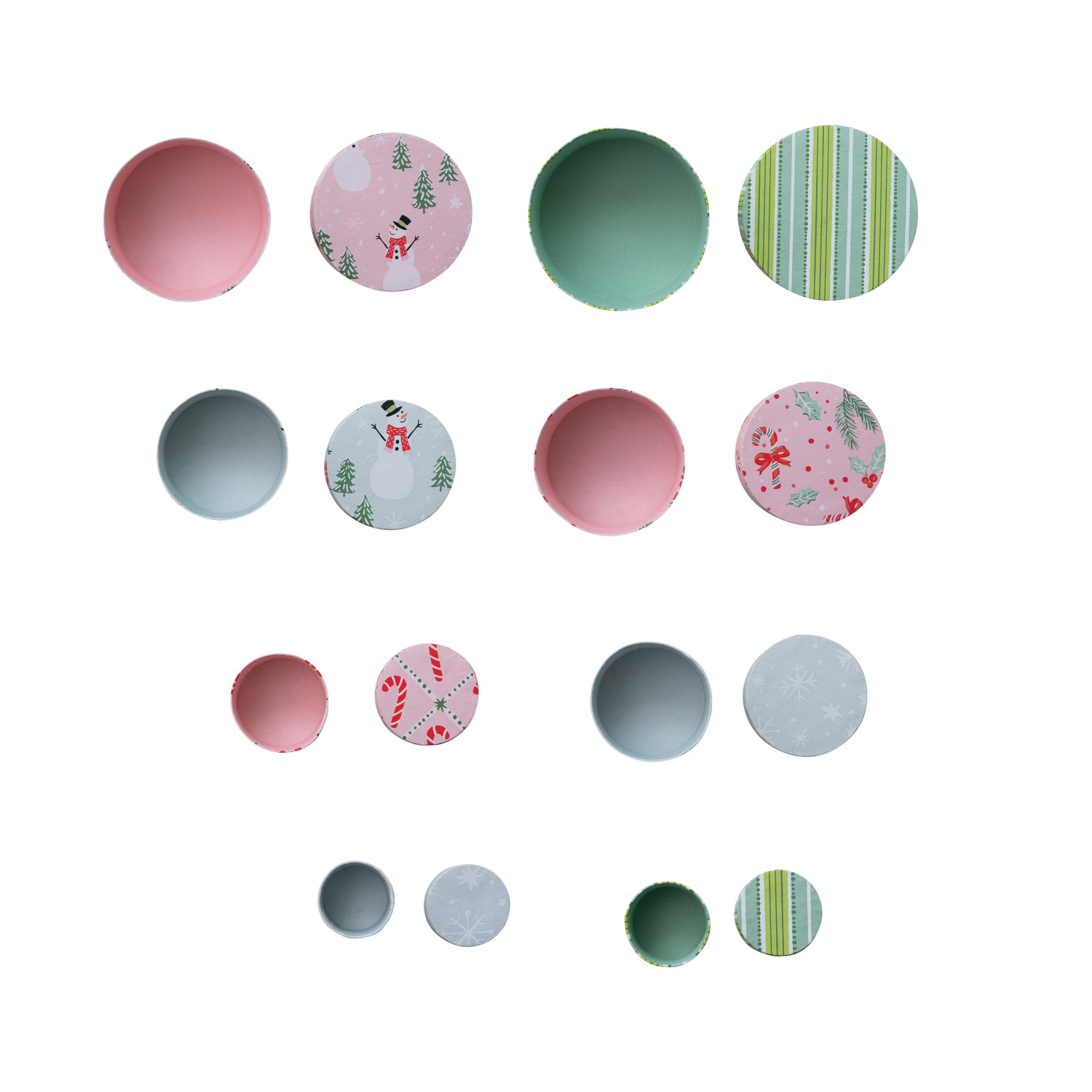 Catalog Name: 2-1/4" Round - 6-1/4" Round Handmade Printed Recycled Paper Nesting Gift Boxes w/ Holiday Patterns, Multi Color, Set of 8 ©