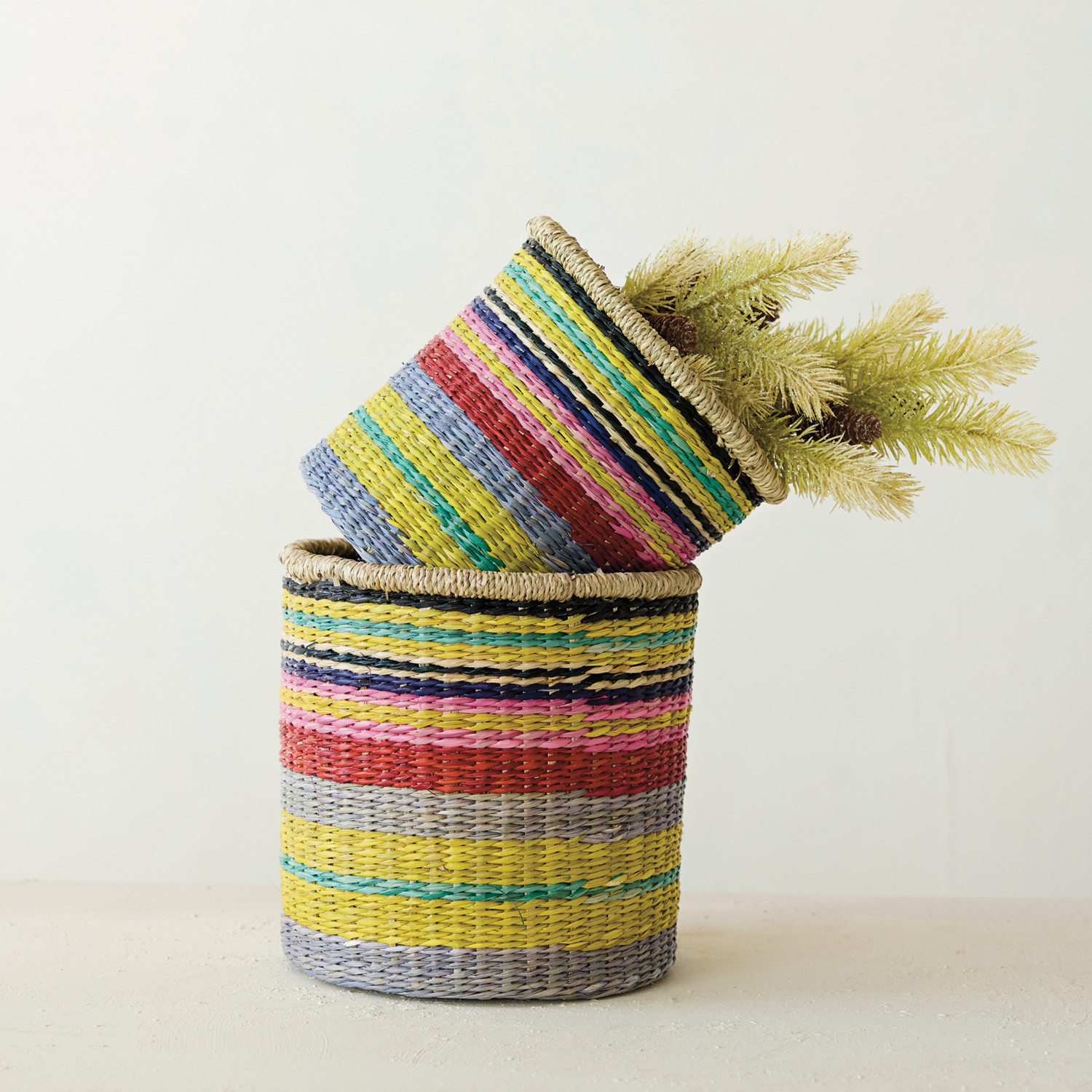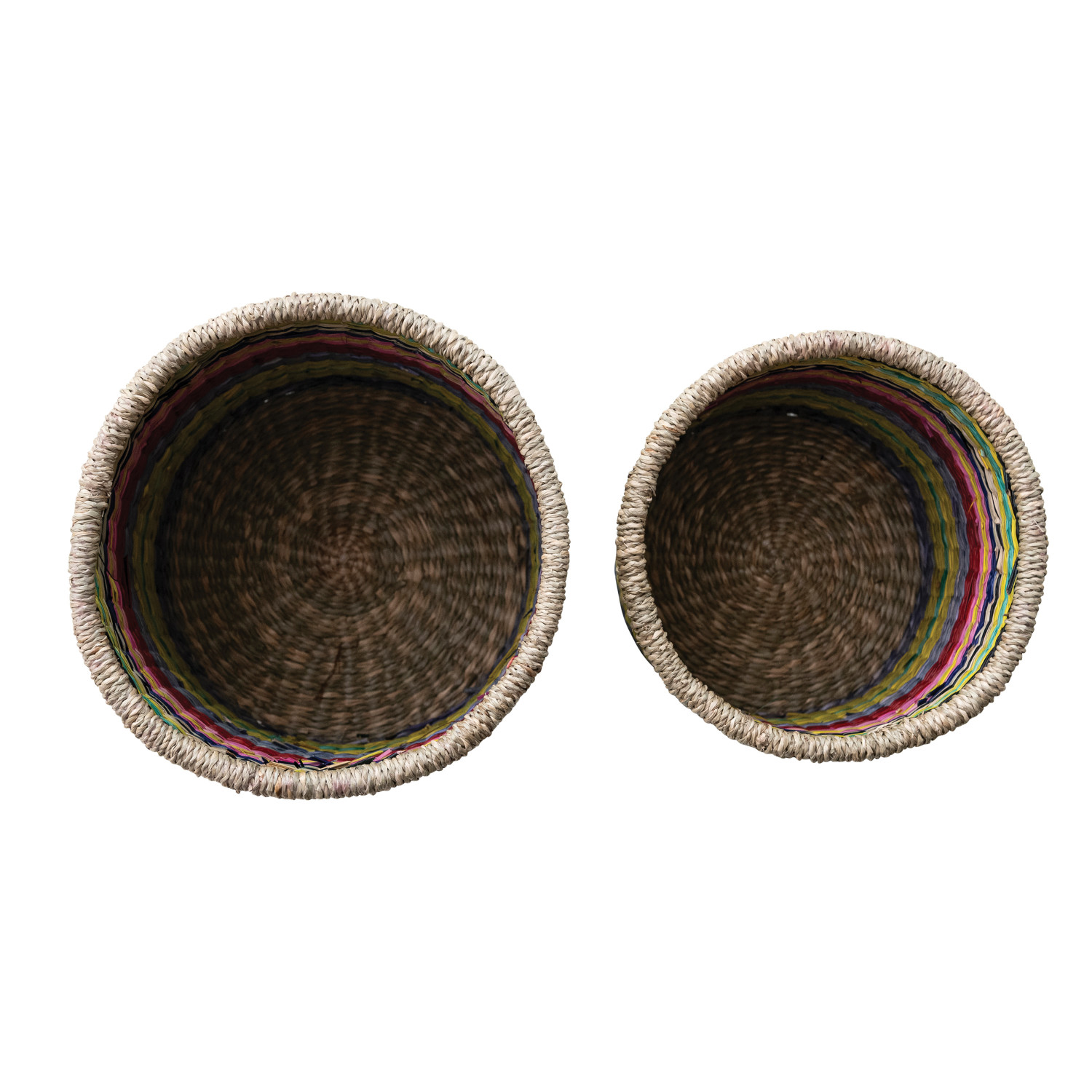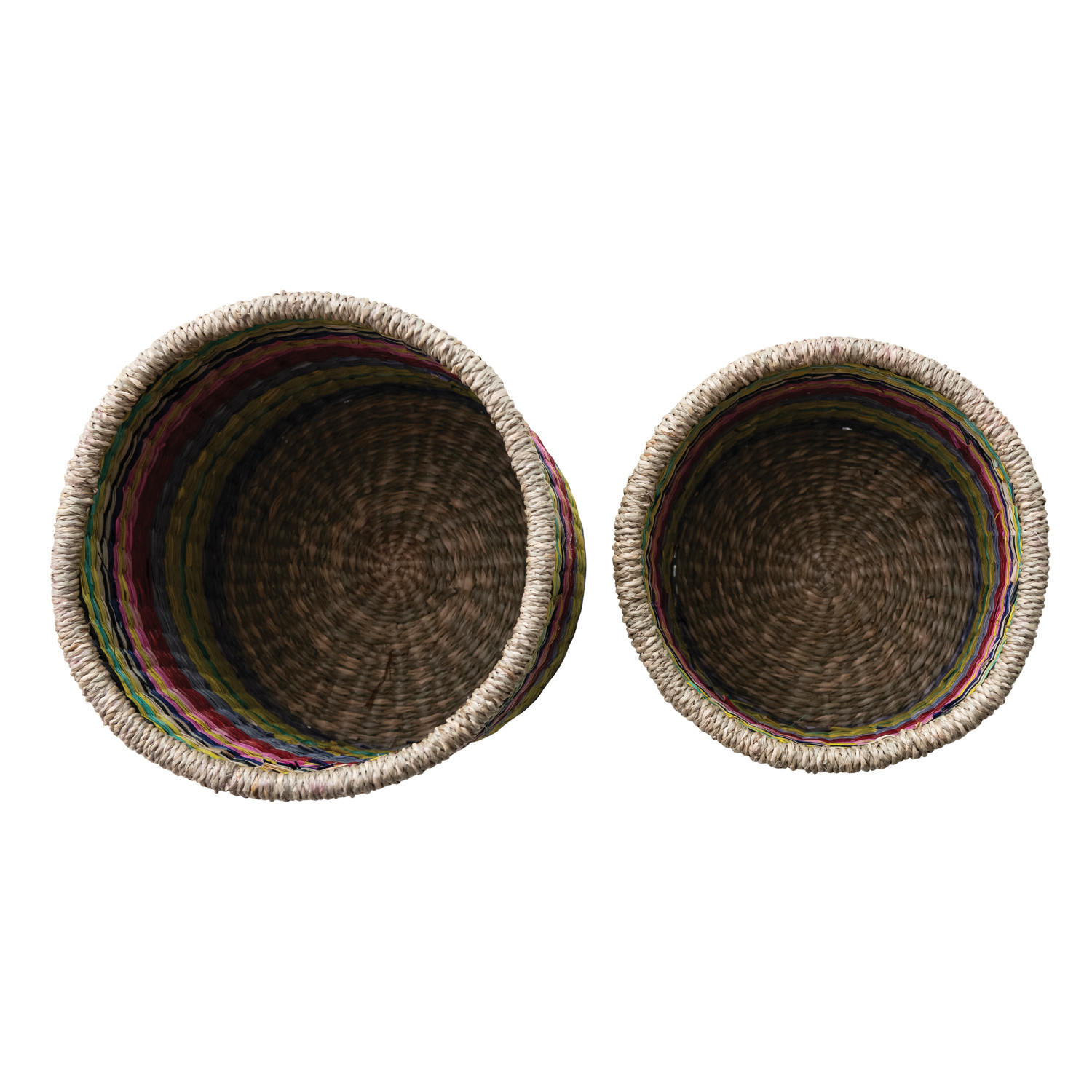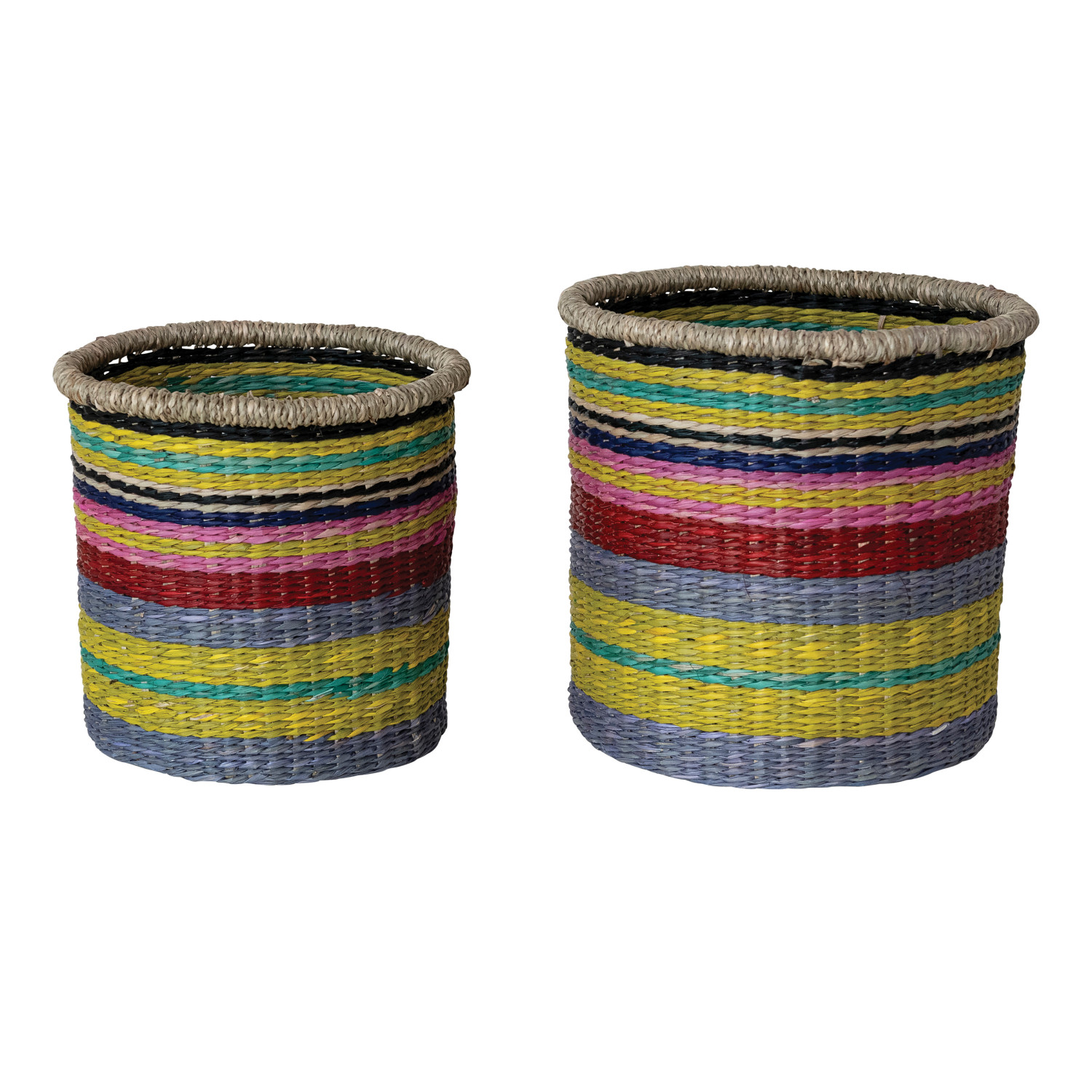 Catalog Name: 8-1/2" Round x 8"H & 7-1/2" Round x 6-1/2"H Hand-Woven Seagrass Striped Baskets, Multi Color, Set of 2