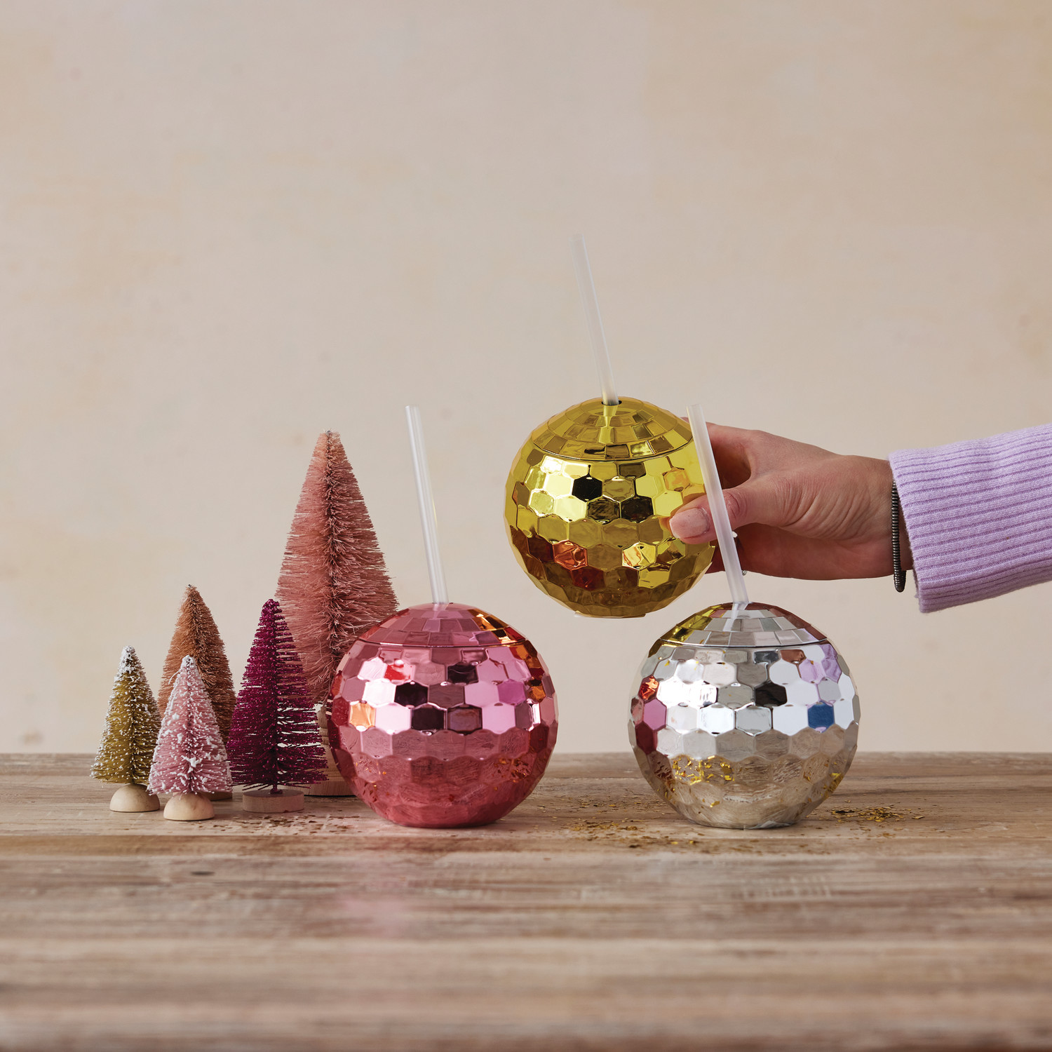 20 oz. Plastic Mirror Ball Cup with Lid & Straw, Set of 2
