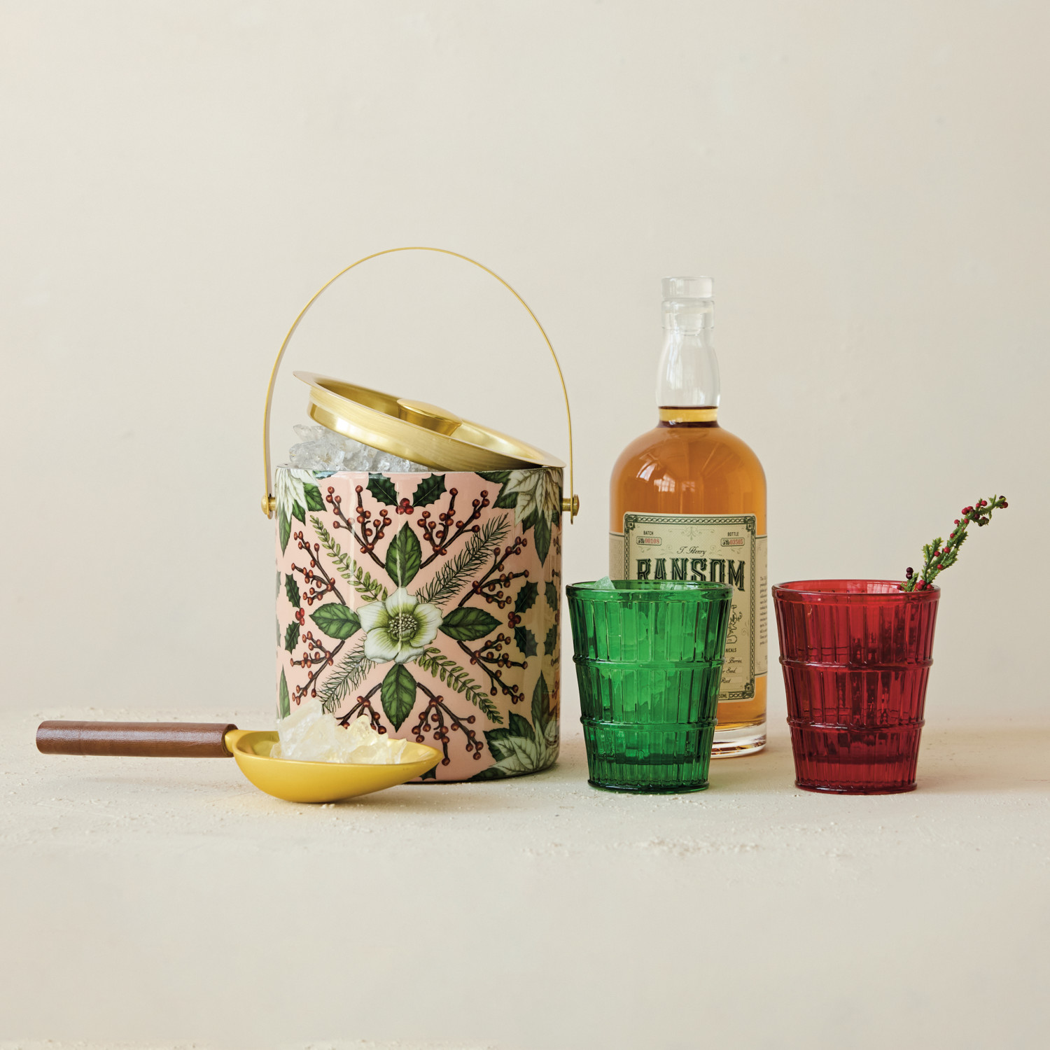 1-1/2 Quart Enameled Stainless Steel Ice Bucket with Seasonal Botanical Pattern ©