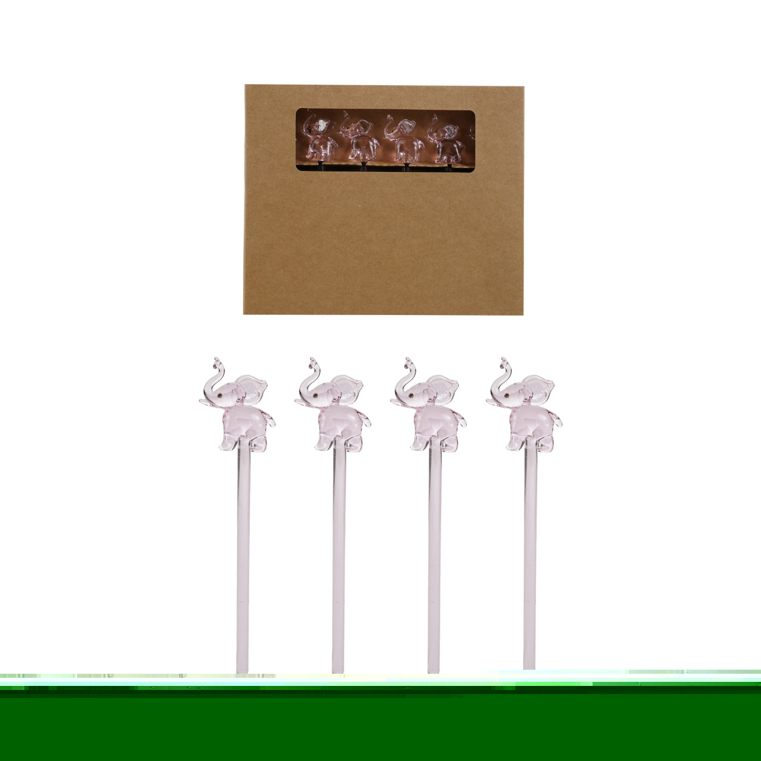 Catalog Name: 6"H Glass Cocktail Stirrers w/ Pink Elephants, Boxed Set of 6