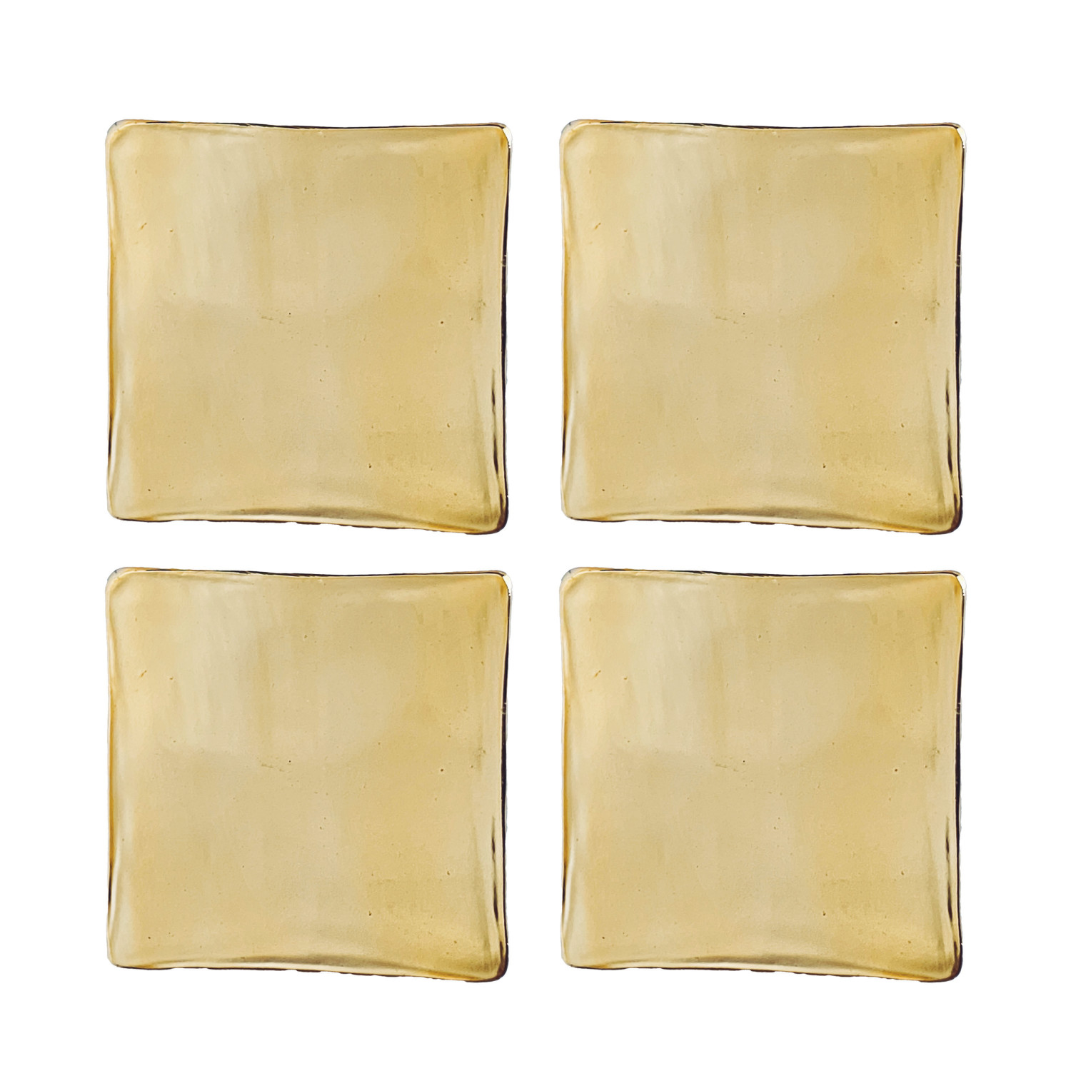 Catalog Name: 4" Square Glass Coasters, Gold Finish, Set of 4 Tied w/ Gold Cord