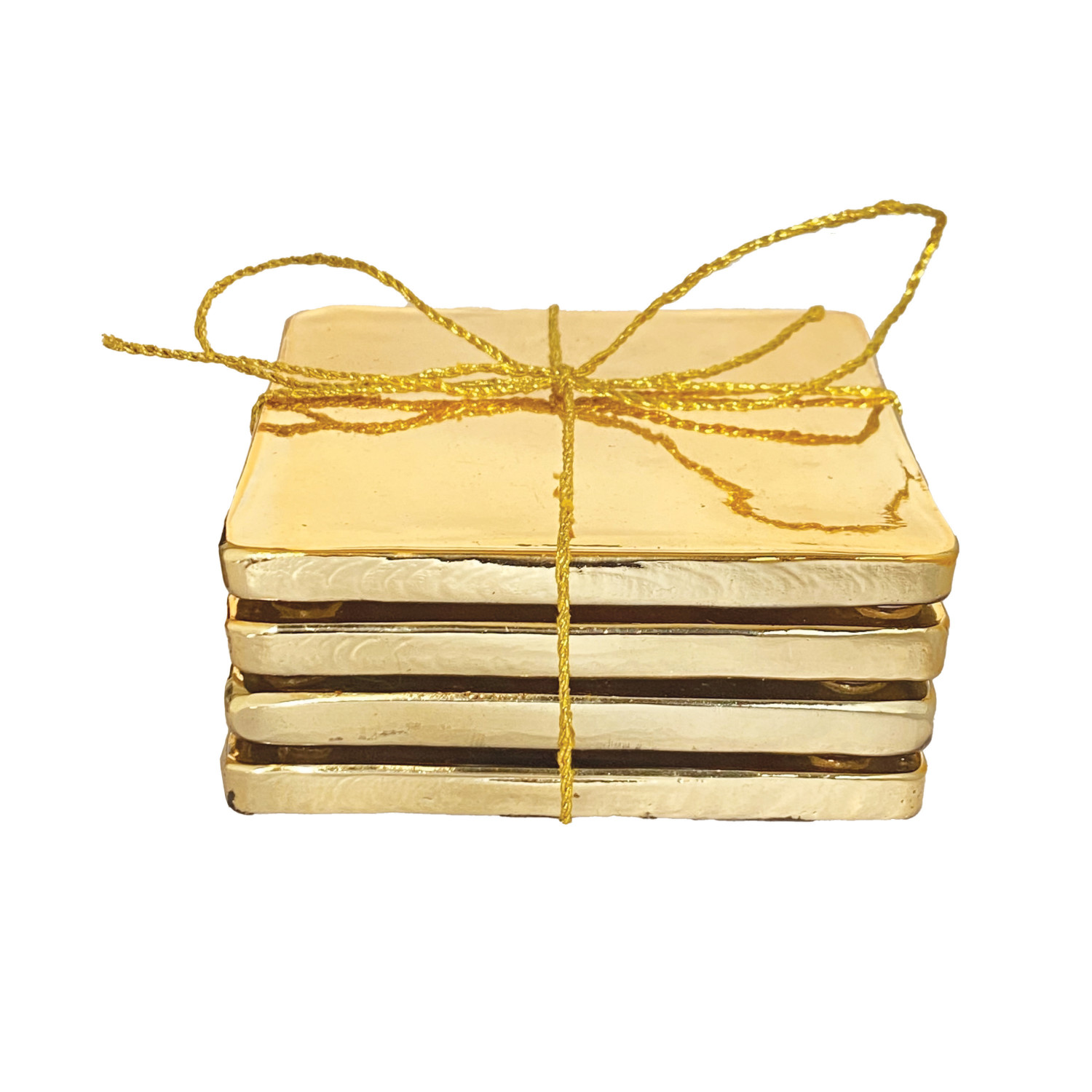 Glass Coasters, Gold Finish, Set of 4 Tied with Gold Cord