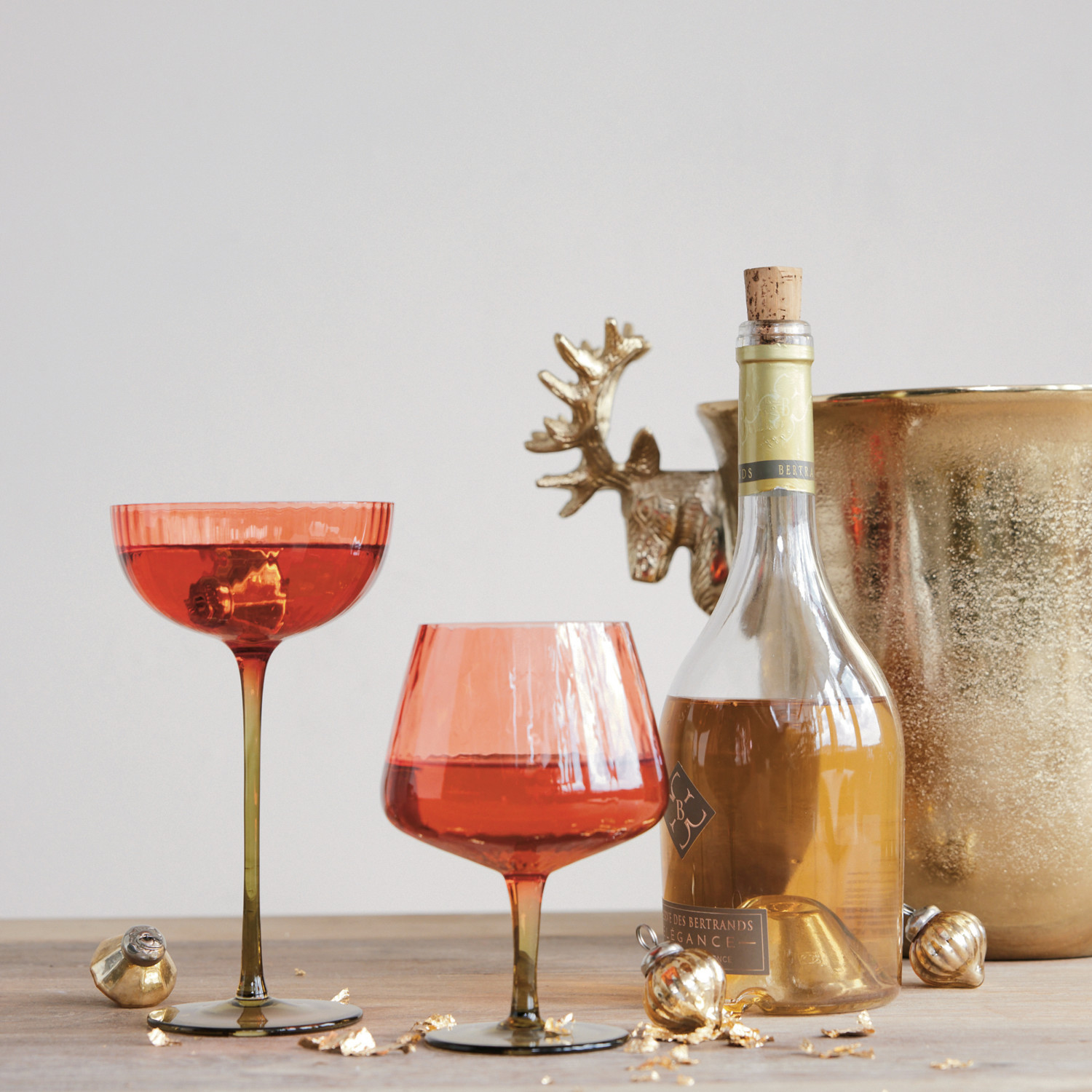 10 oz. Ribbed Stemmed Coupe Glass, Red & Olive Green