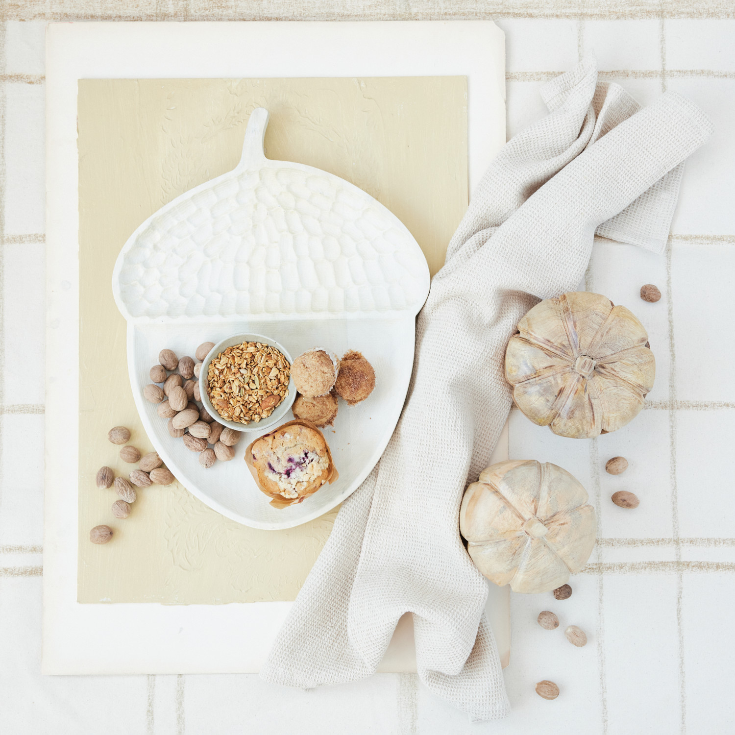 Hand-Carved Mango Wood Acorn Shaped Cheese/Serving Board with 2 Sections, Bleached