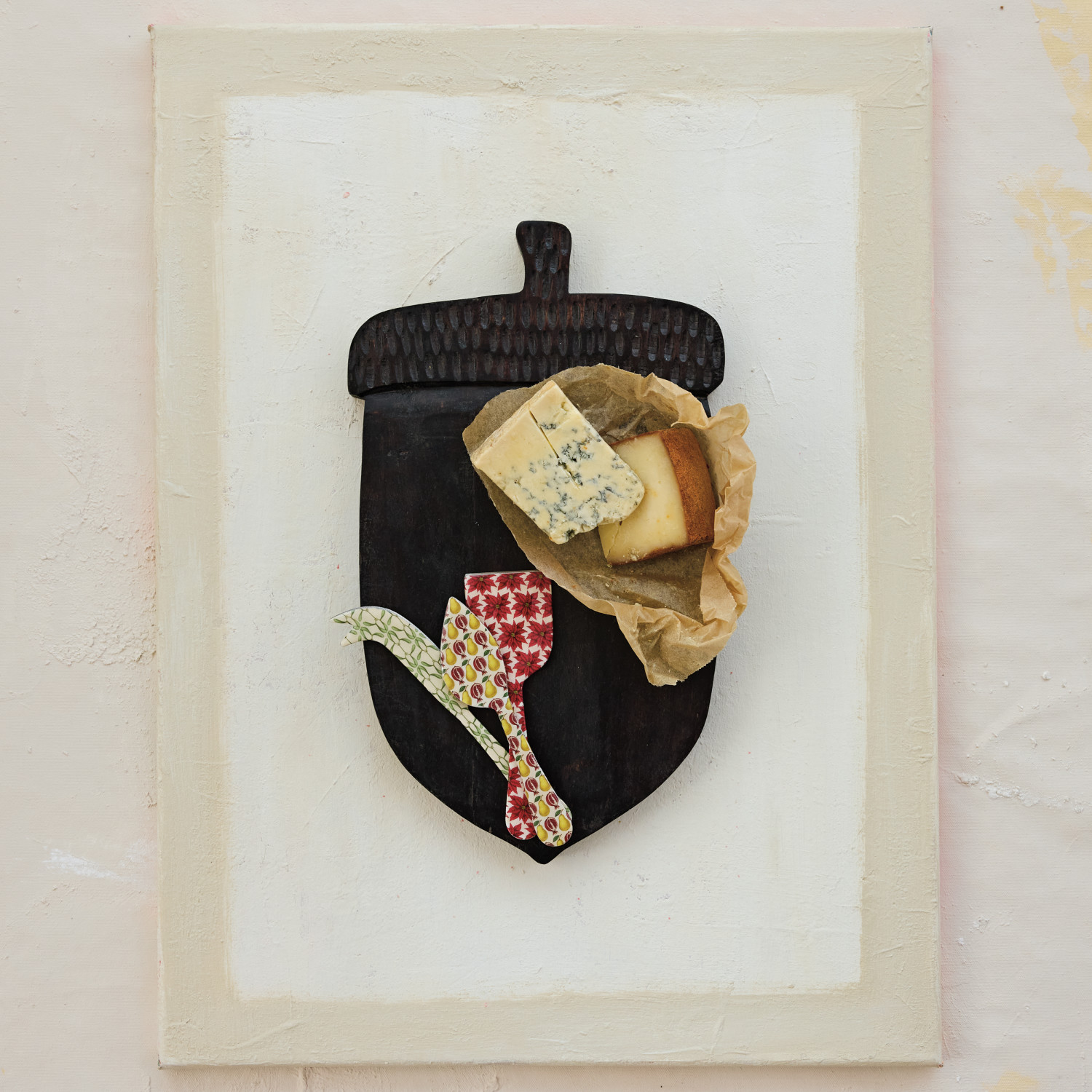 Hand-Carved Mango Wood Acorn Shaped Cheese/Serving Board, Espresso Finish