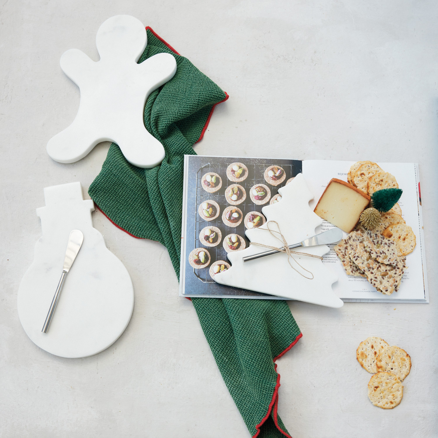 Marble Snowman Shaped Cheese/Serving Board with Canape Knife, Set of 2 Tied with Jute