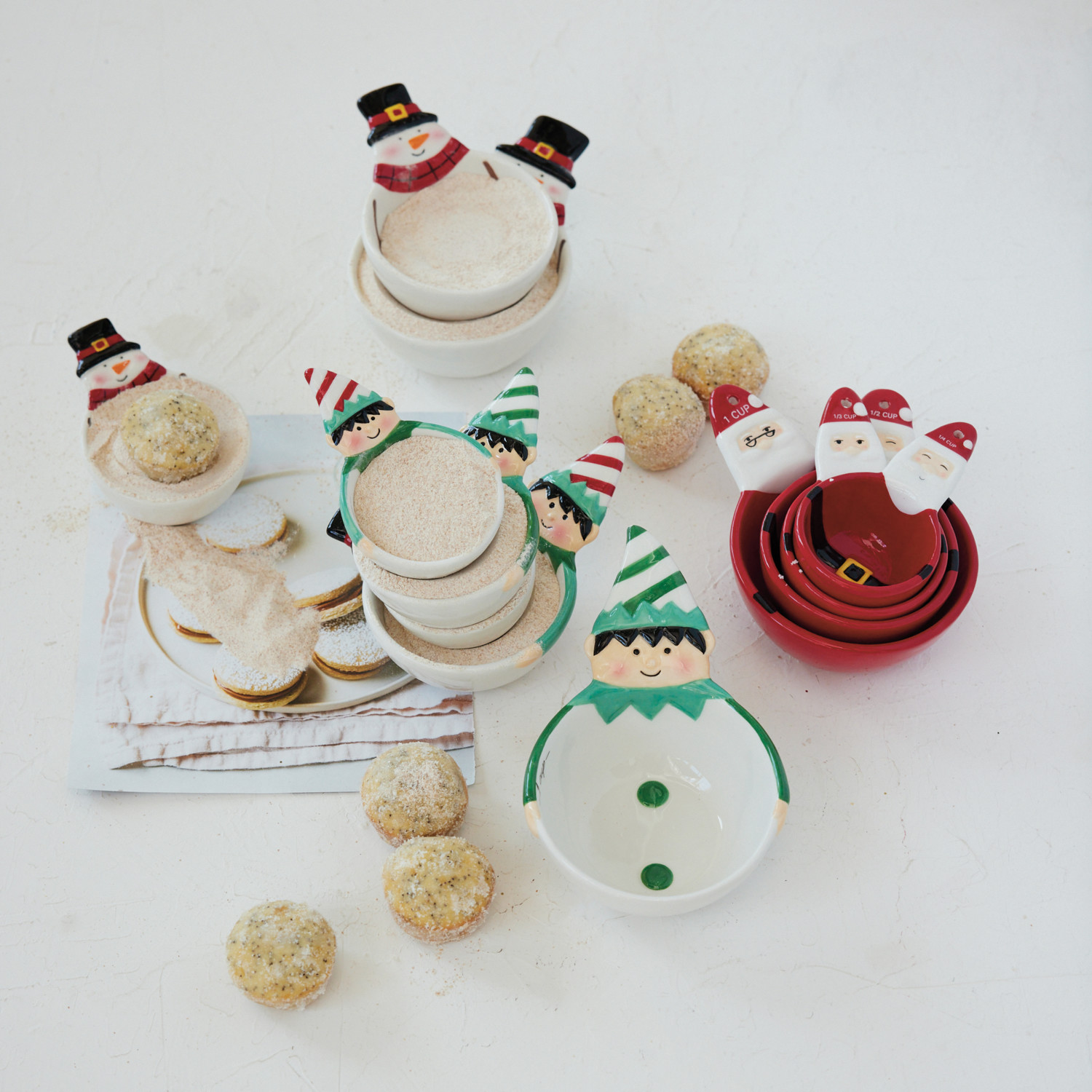 1, 1/2, 1/3 & 1/4 Cup Hand-Painted Ceramic Elf Shaped Measuring Cups, Set of 4