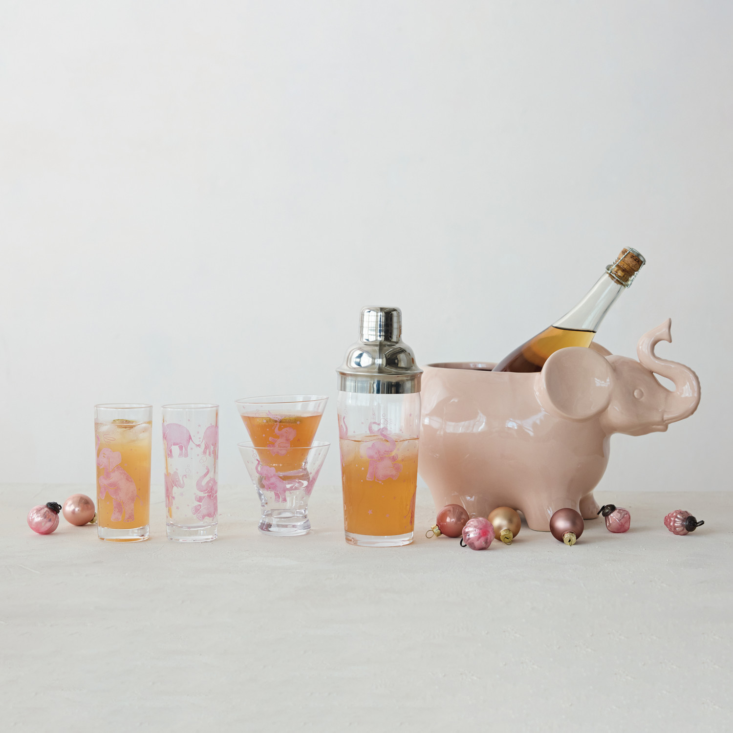 6 oz. Highball Drinking Glass with Pink Elephants, 2 Styles ©