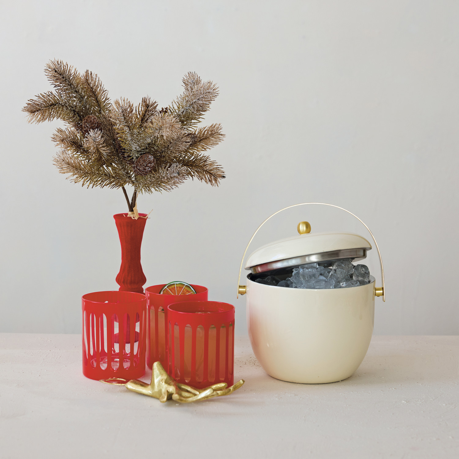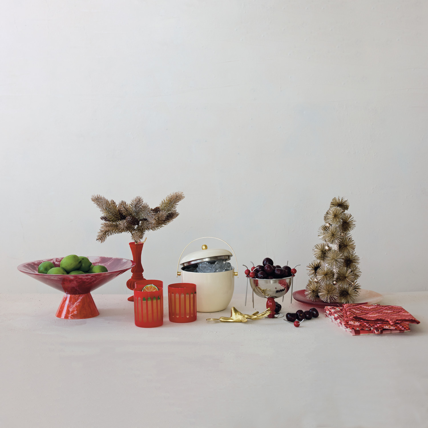 12 oz. Striped Drinking Glass/Votive Holder, Red