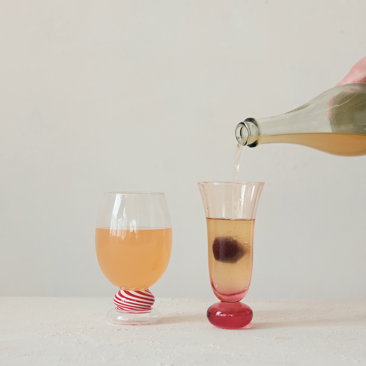 14 oz. Blown Drinking Glass with Candy Striped Stem, Red & White
